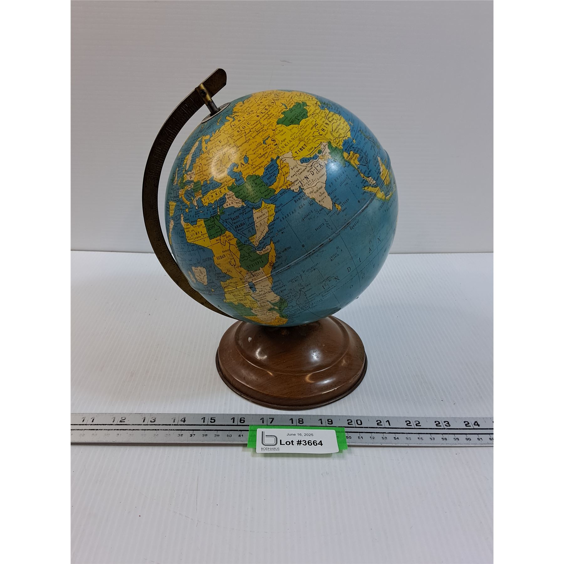 Vintage Metal Globe - Some Wear - 10" x 8"