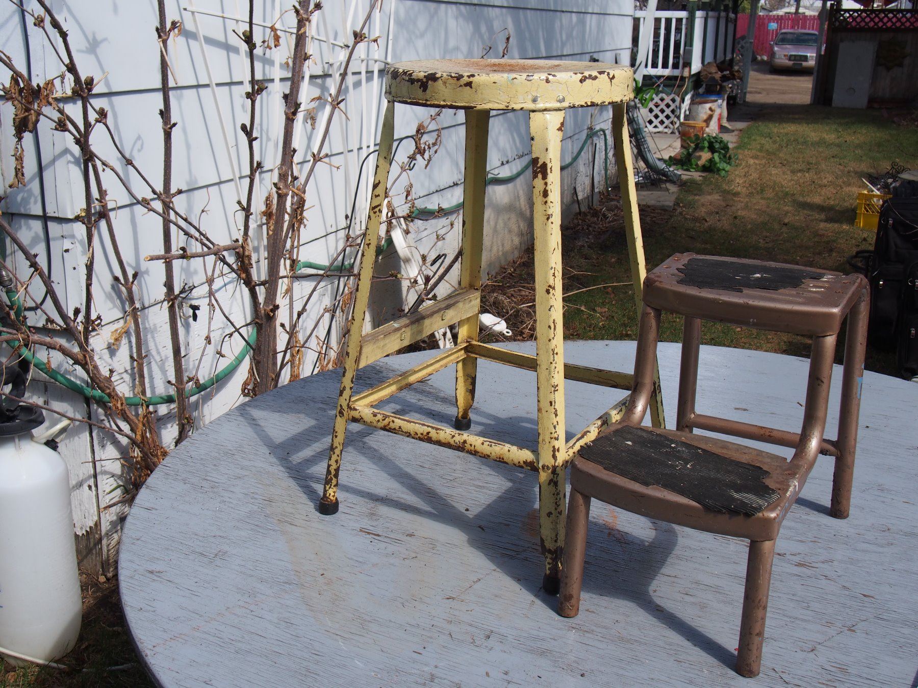 Vintage Metal Stand and Stool