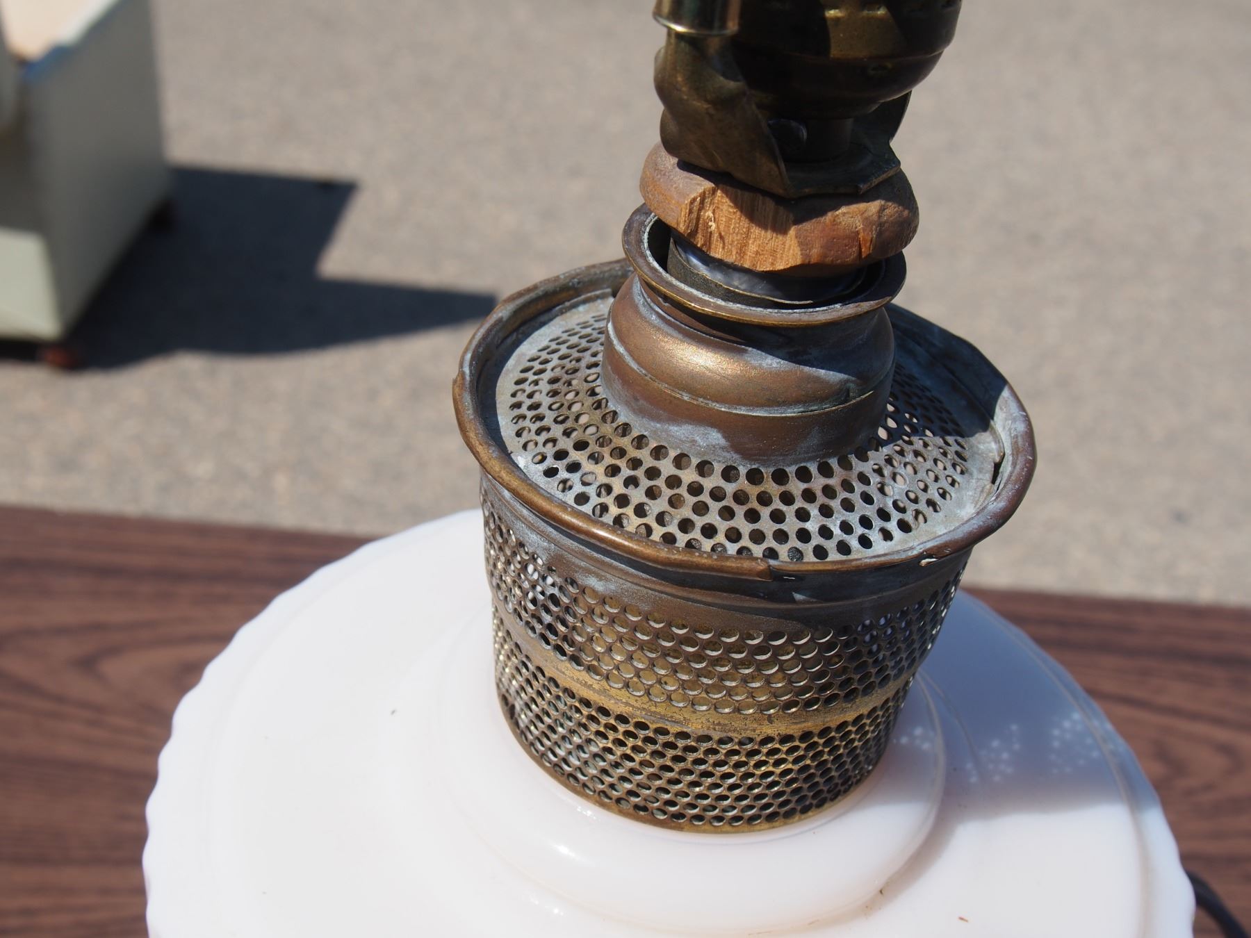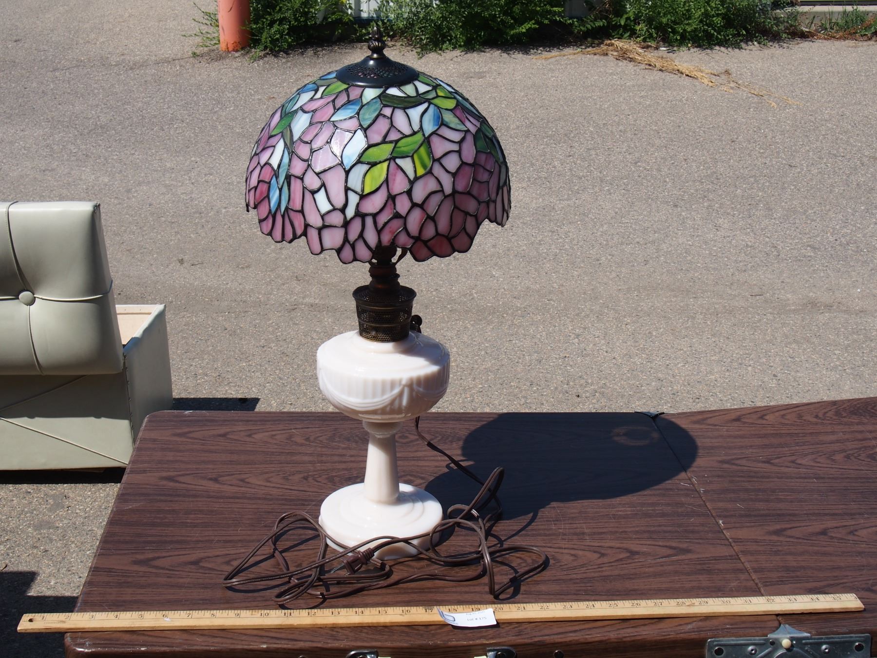 Vintage Milk Glass Lamp with Tiffany Shade (Electric)