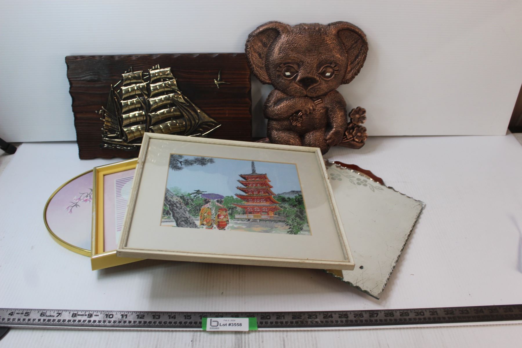 Vintage Mirror With Bevelled Edge, Various Framed Prints, Wall Hangings, etc.