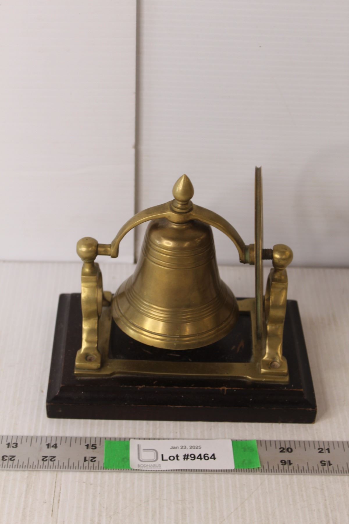 Vintage Mounted Nautical Brass Bell w/ Wheel