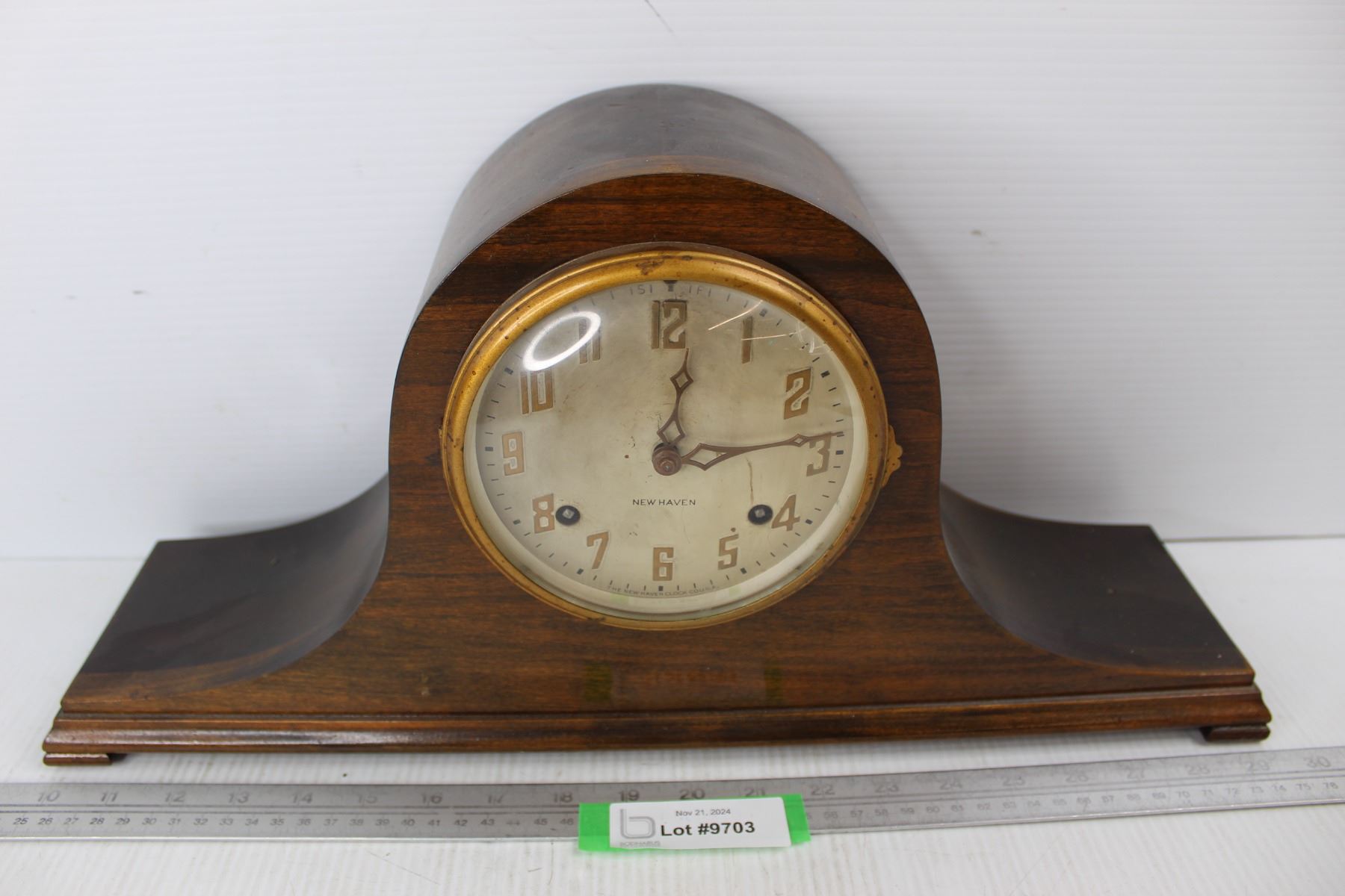 Vintage New Haven Wooden Mantle Clock- 20'' x 4.5'' x 10''