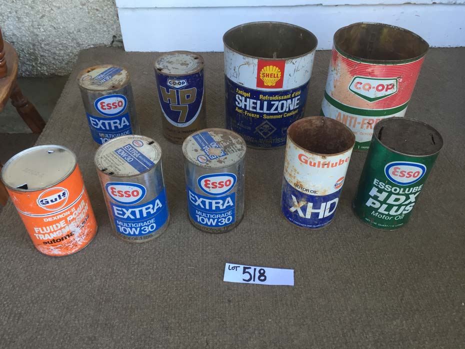 Shell, Co-op antifreeze cans, 7 single quart oil cans