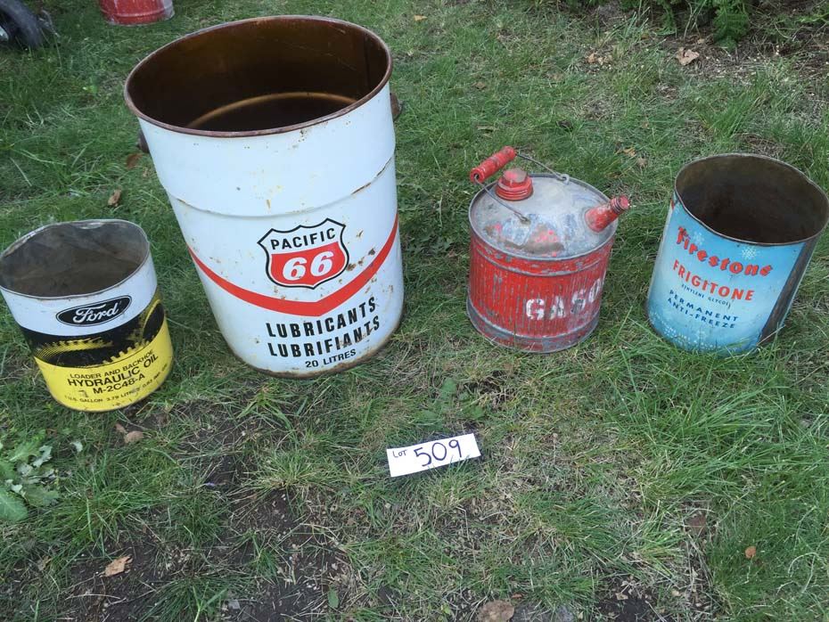 Gas can, Pacific 66, Firestone, Ford