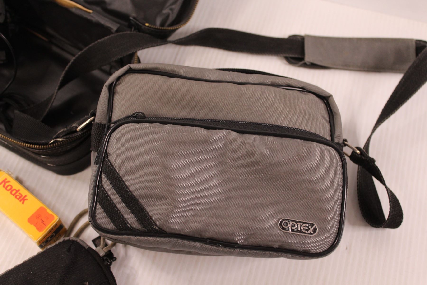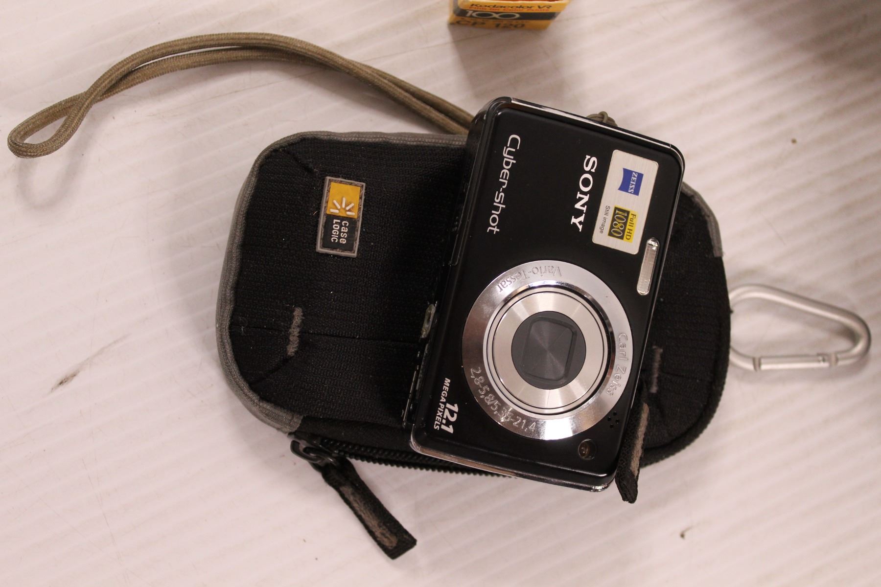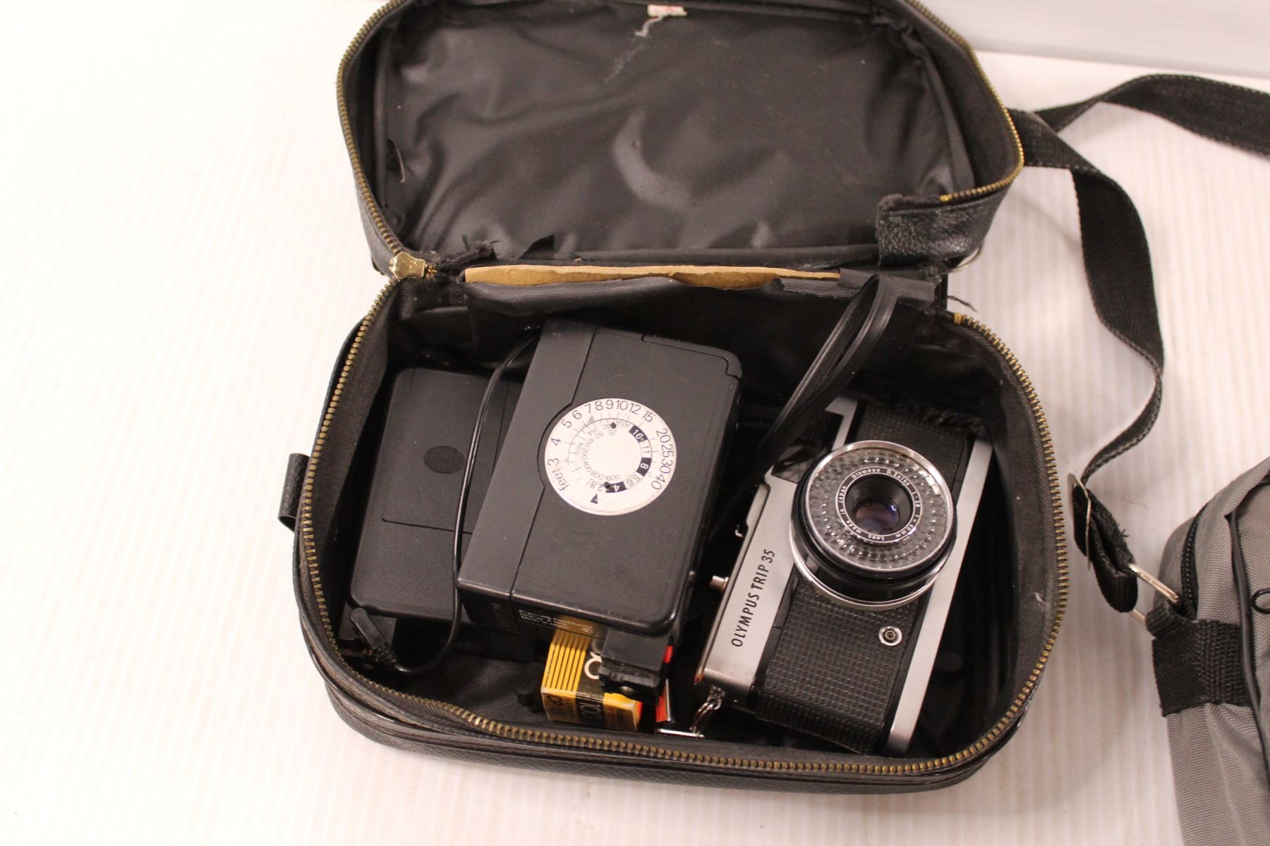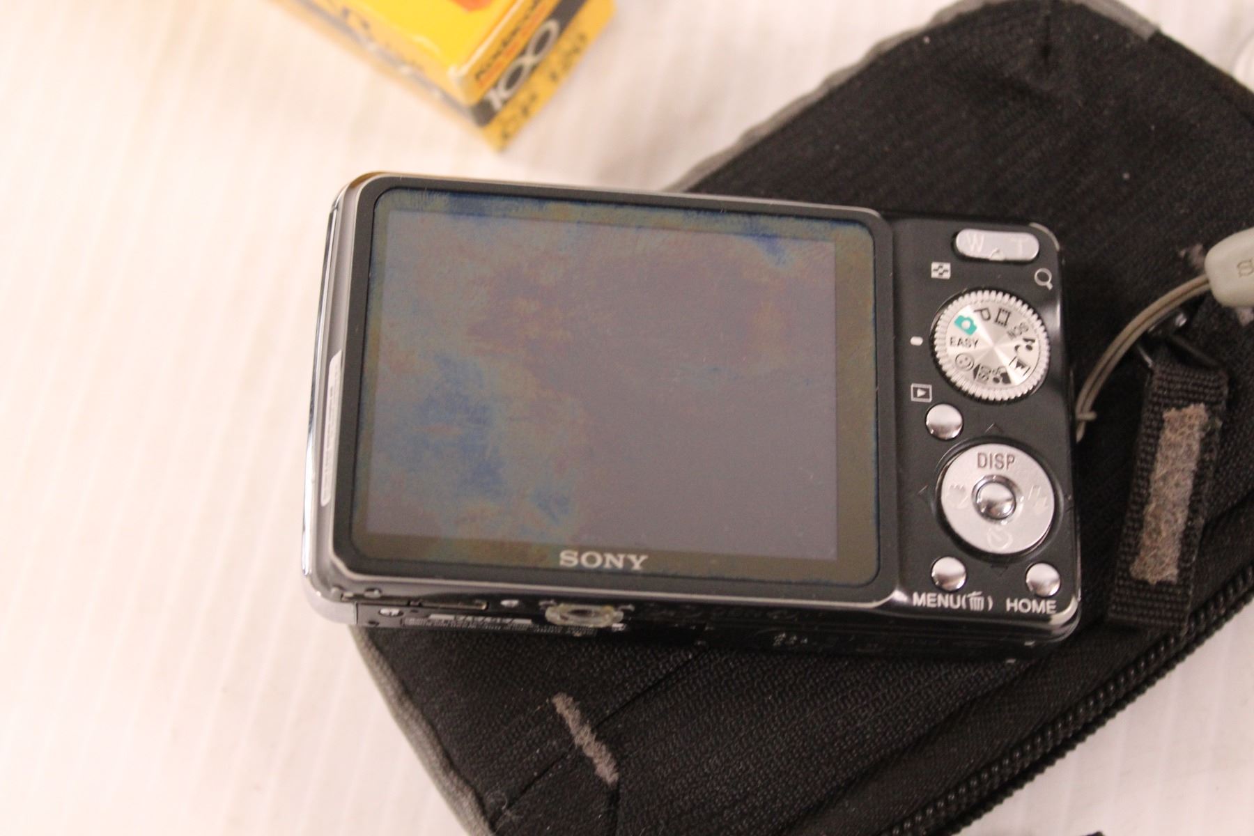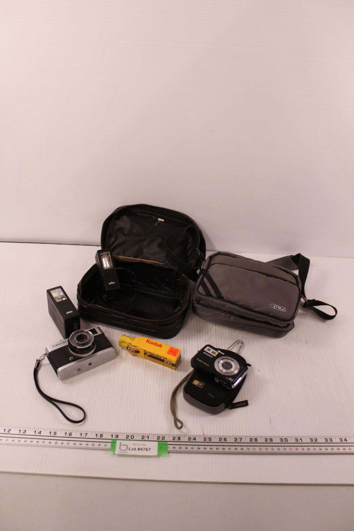 Vintage Olympus Trip 35 40mm Camera (1267812), (2) Braun Flashes, Sony Cybershot 12.1 MegaPixel Digital Camera, Roll of Kodak Film & (3) Cases - All Untested