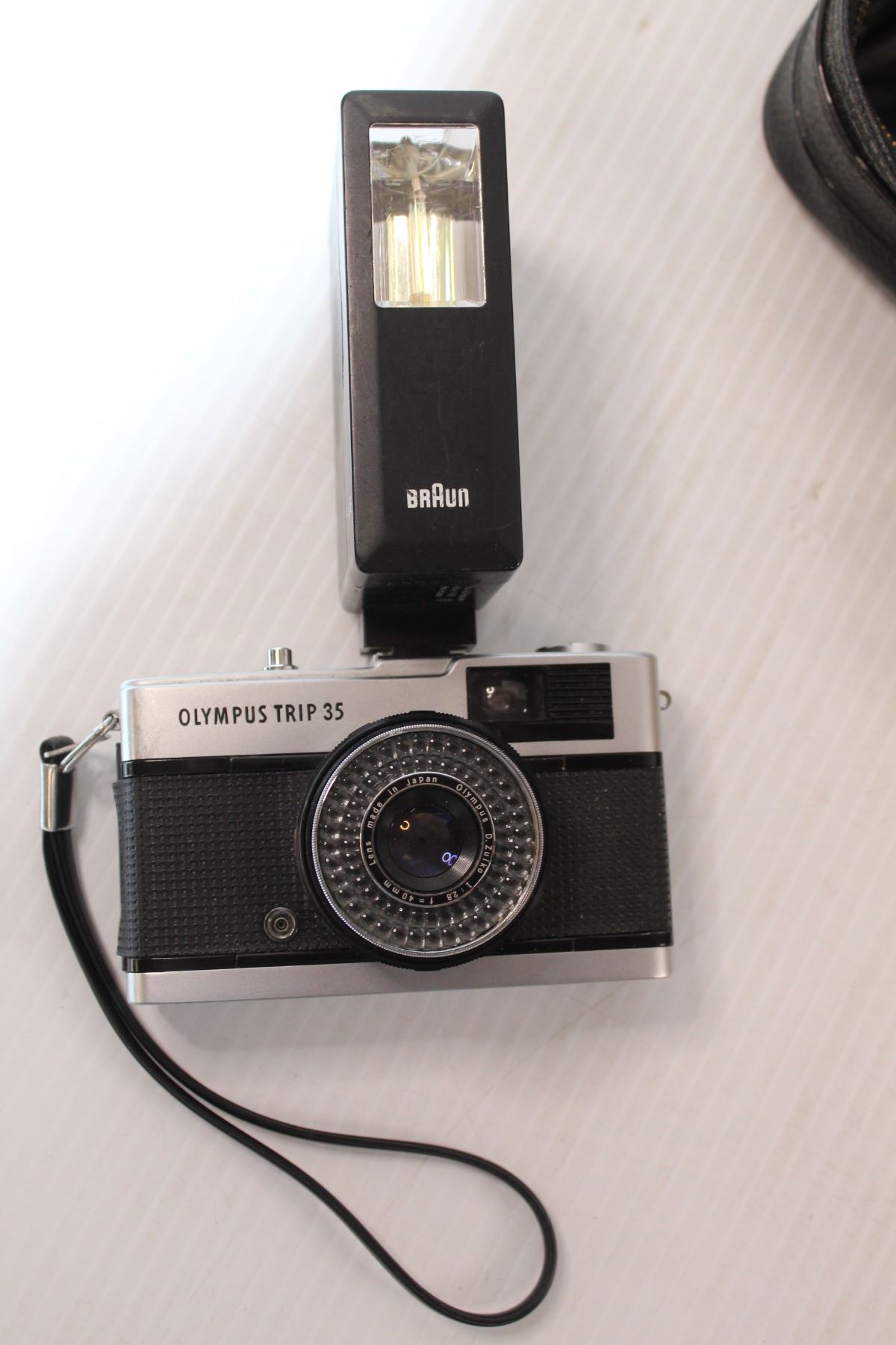 Vintage Olympus Trip 35 40mm Camera (1267812), (2) Braun Flashes, Sony Cybershot 12.1 MegaPixel Digi