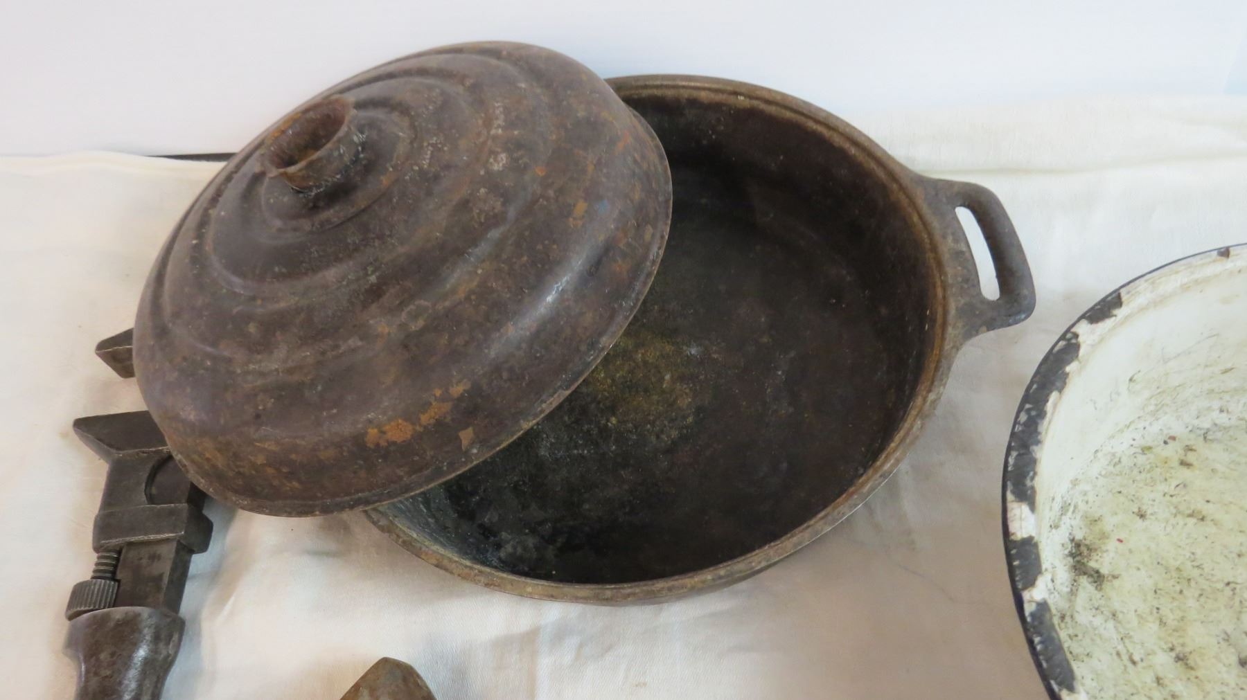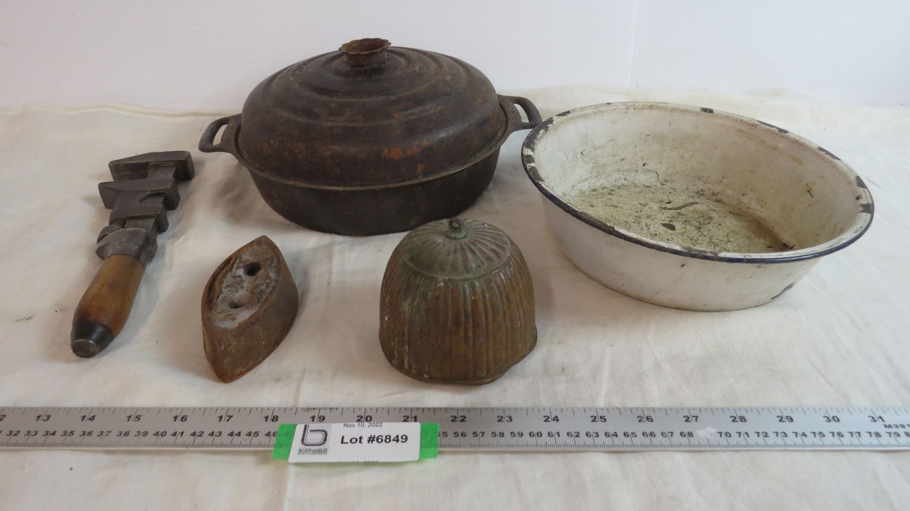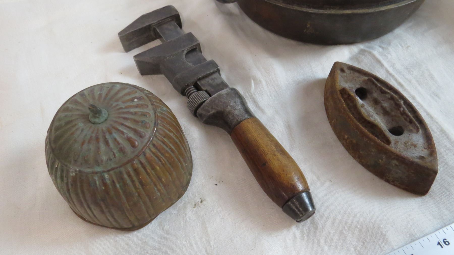Vintage Pans - Heavy Lamp Counter Weight -Vintage Wrench - Iron Base