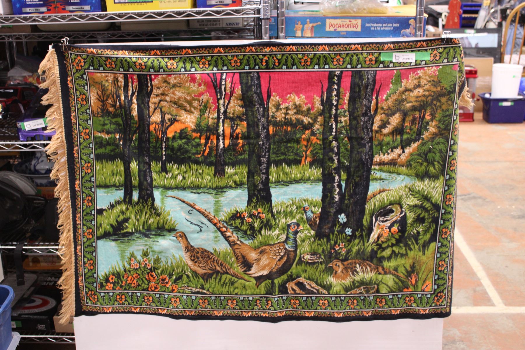 Vintage Peacock Bird and Nature Scene Tapestry Wall Hanging