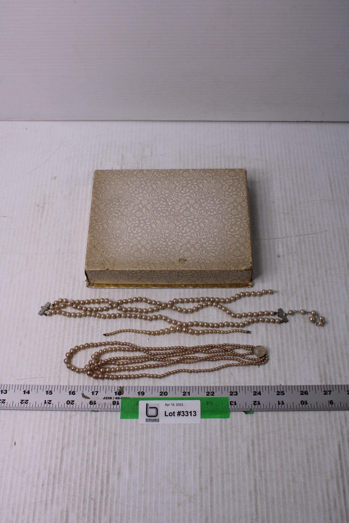 Vintage Pearl Necklaces in Box (CGA, One Necklace is Broken)