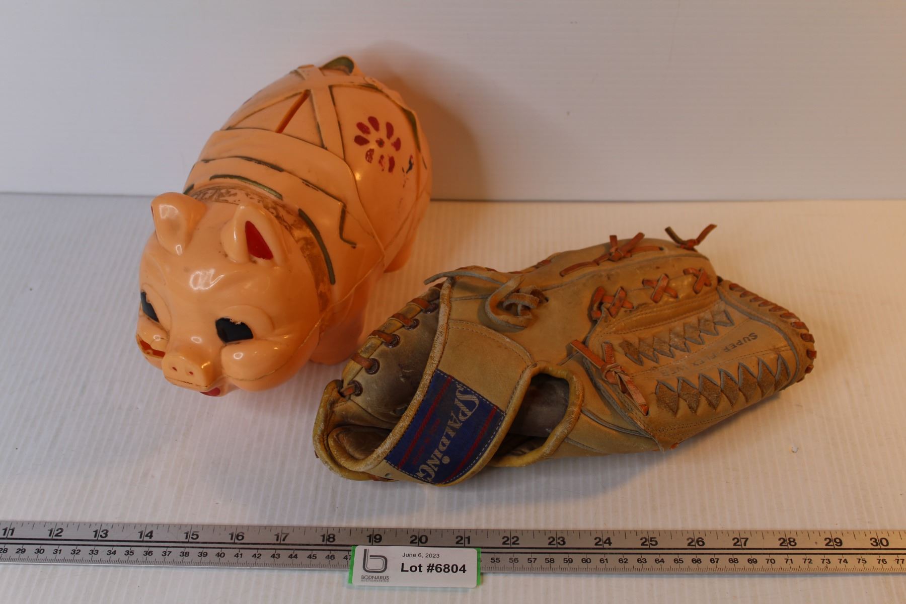 Vintage Plastic Piggy Bank (damaged) - Spalding Ball Glove