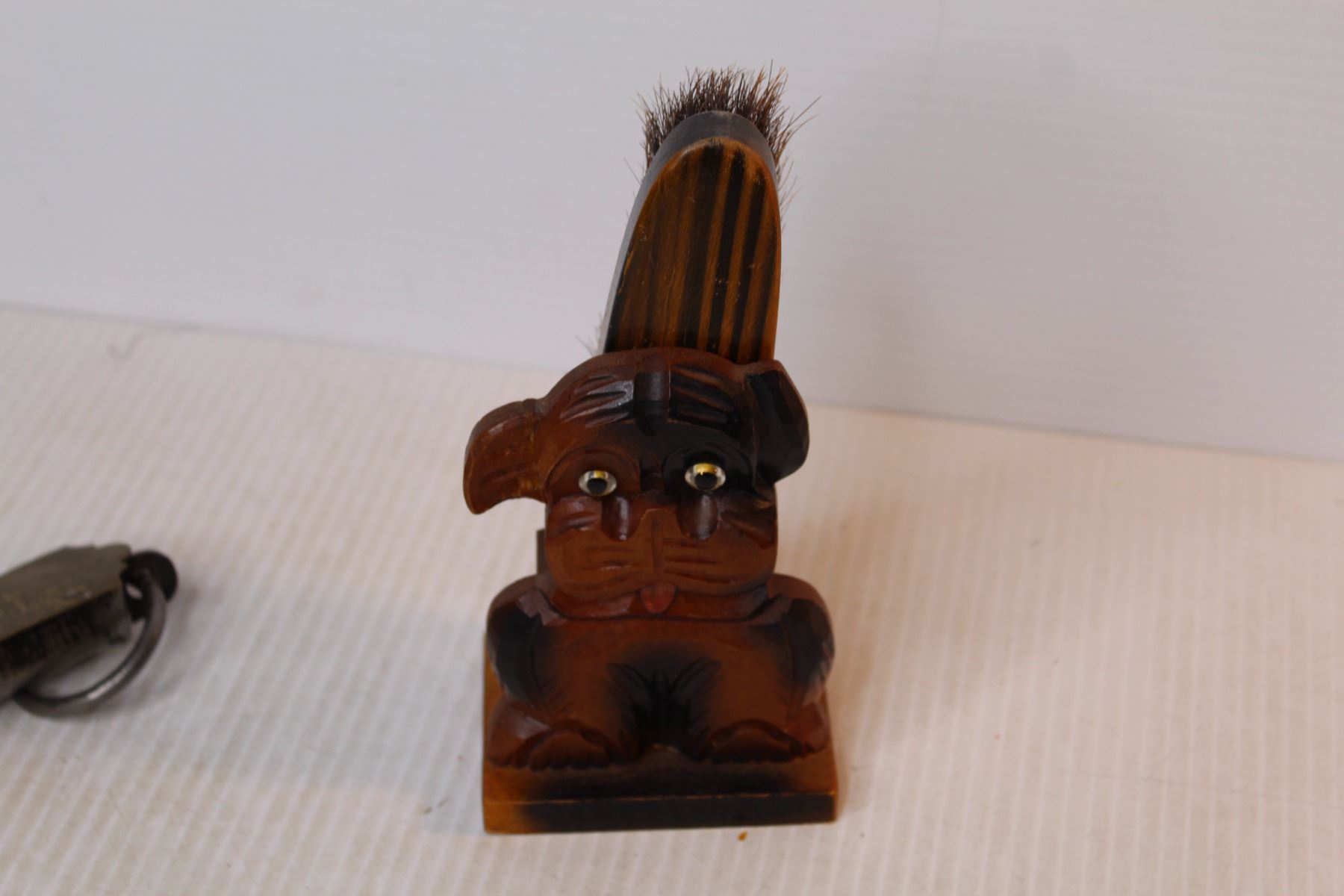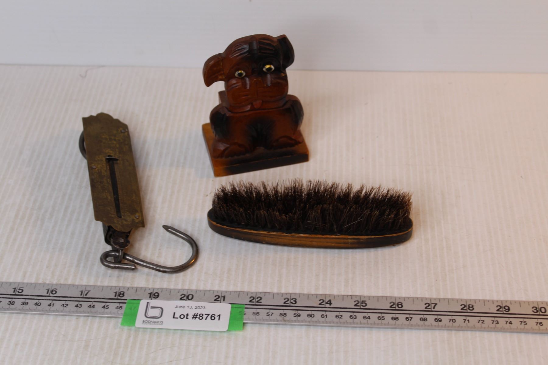 Vintage Pocket Scale - Wooden Brush in Dog Themed Holder