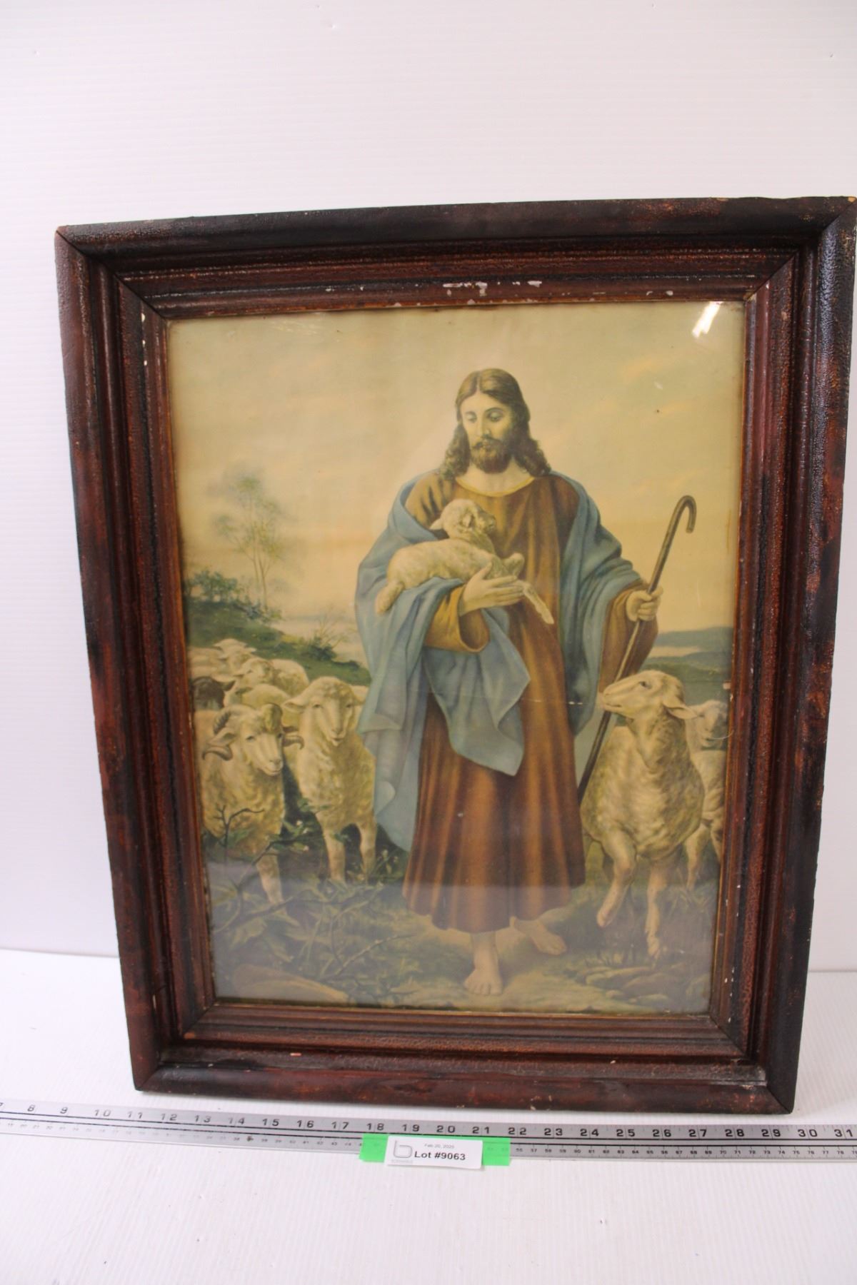 Vintage Print of Jesus & His Flock in Wood Frame - 19" x 24"