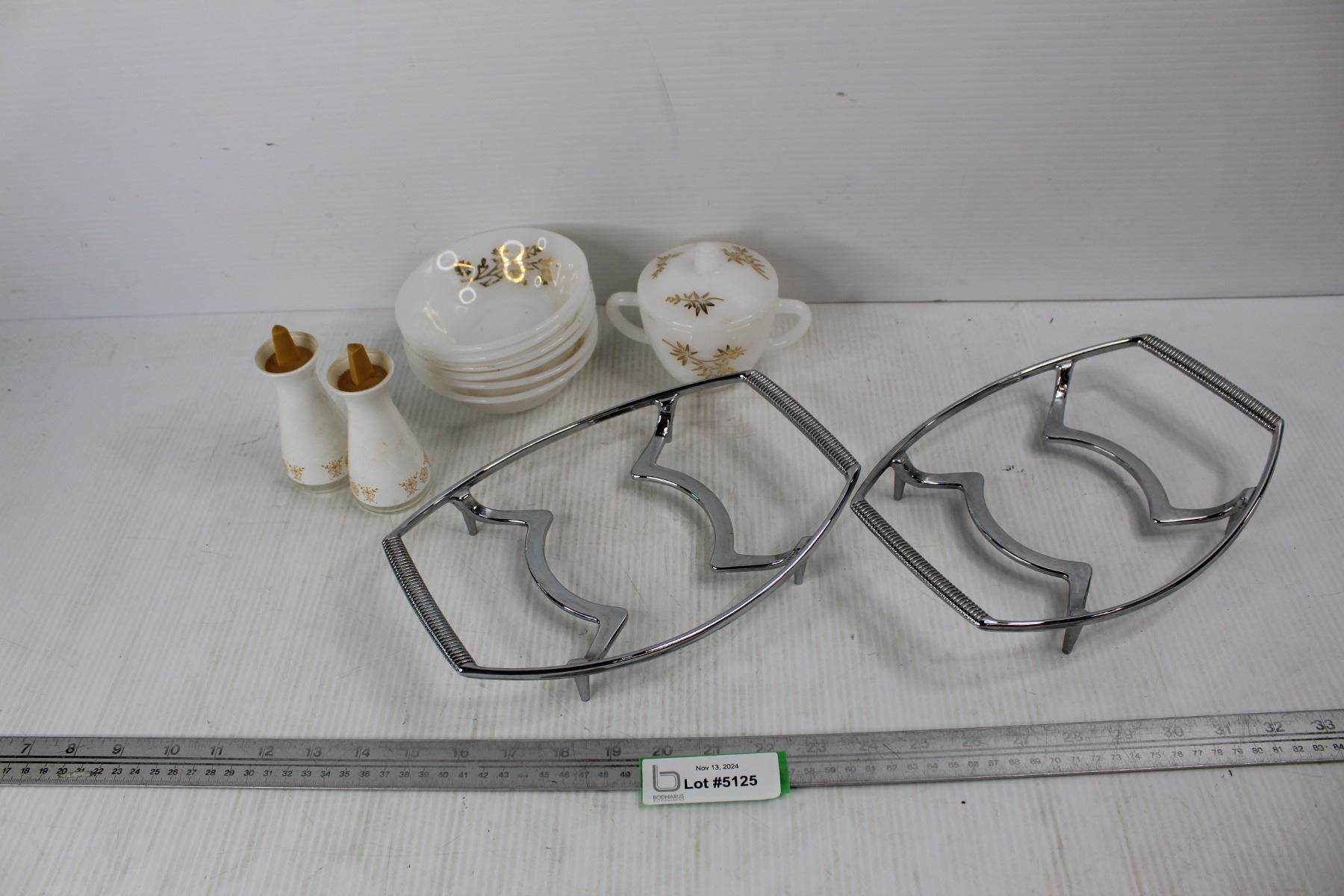 Vintage Pyrex Butterfly Gold Salt And Pepper Shakers, (6) Federal Glass Bowls w/ Suger Bowl, Misc