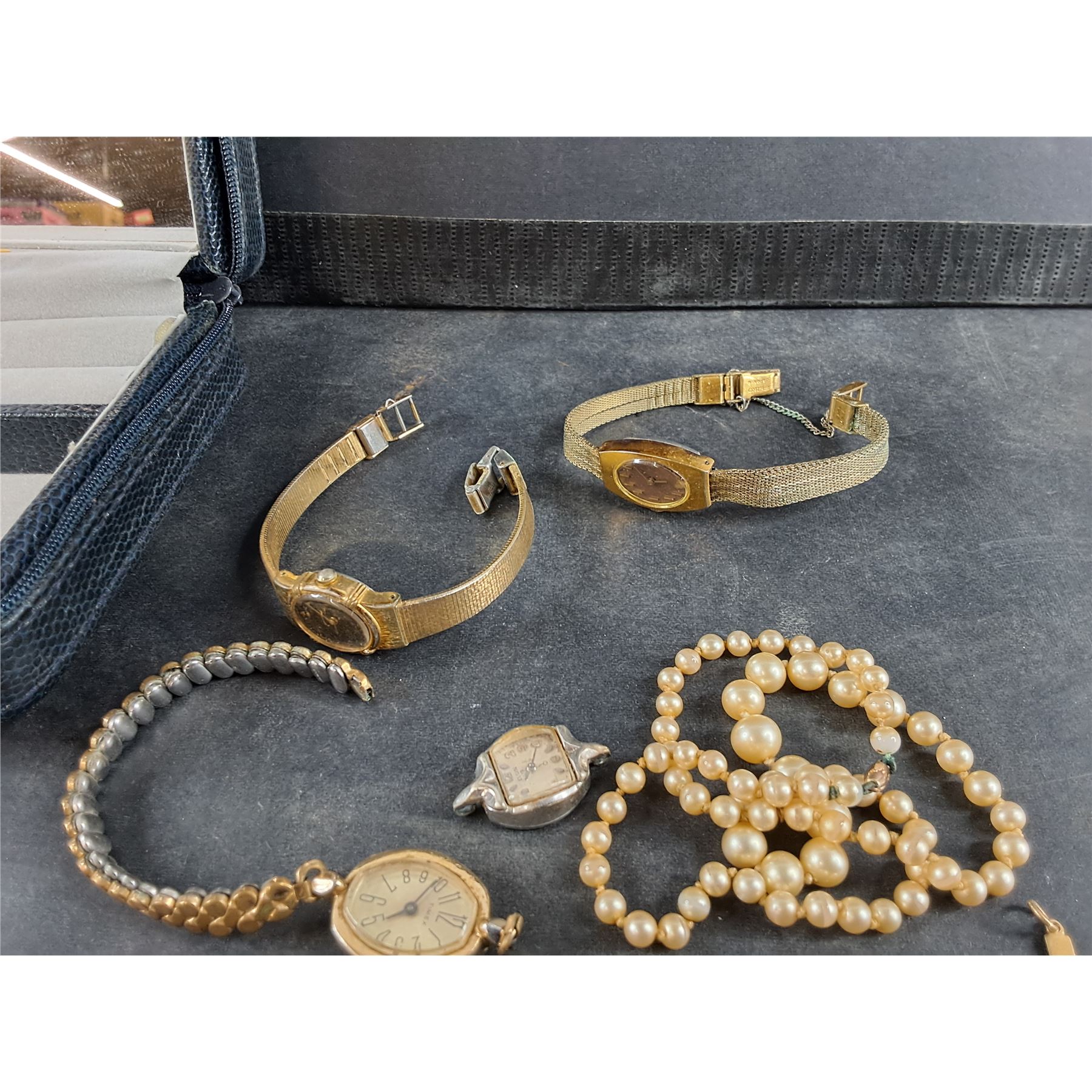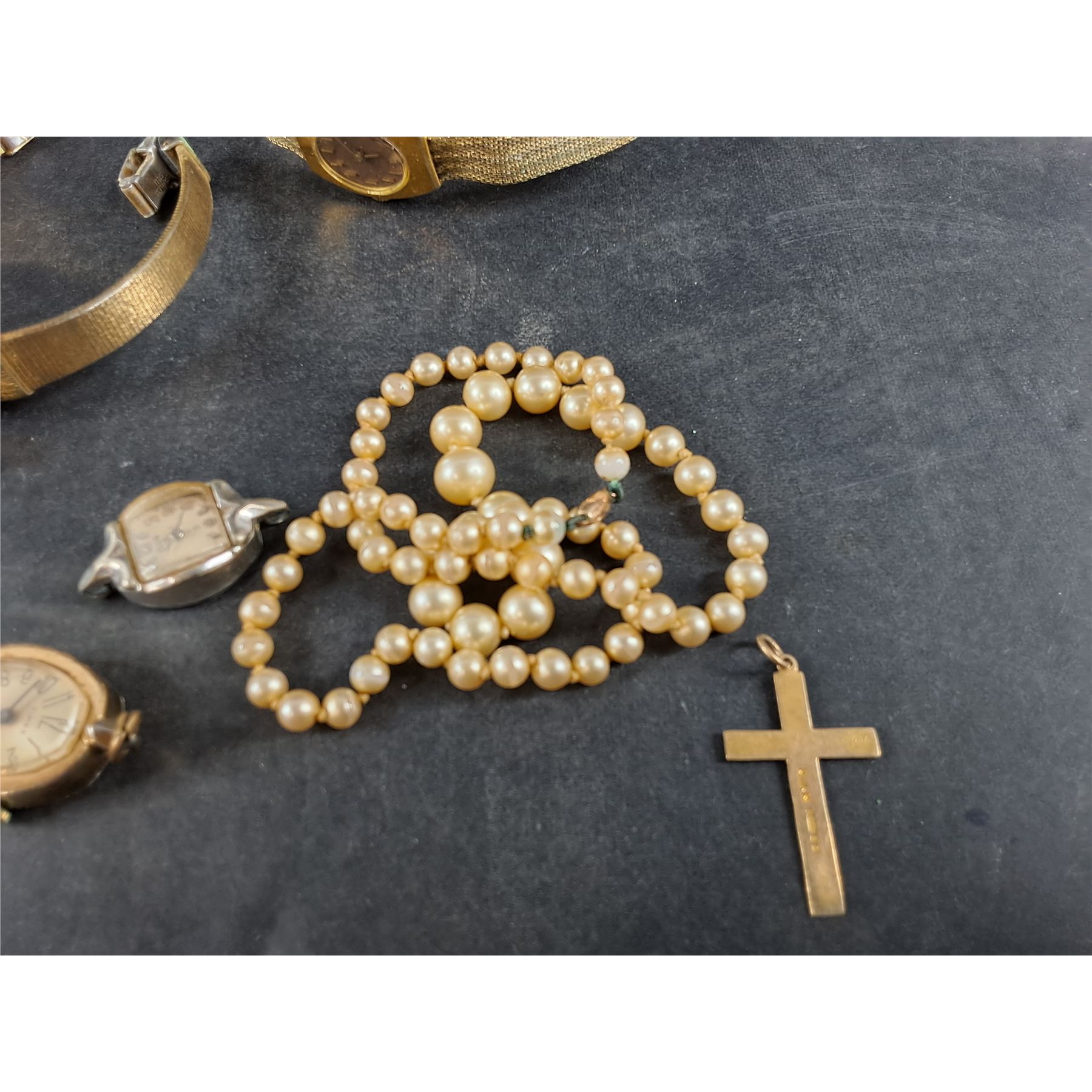 Vintage Quartz Watches - As Is, Cross Pendant, Pearl Necklace, Jewelry Box
