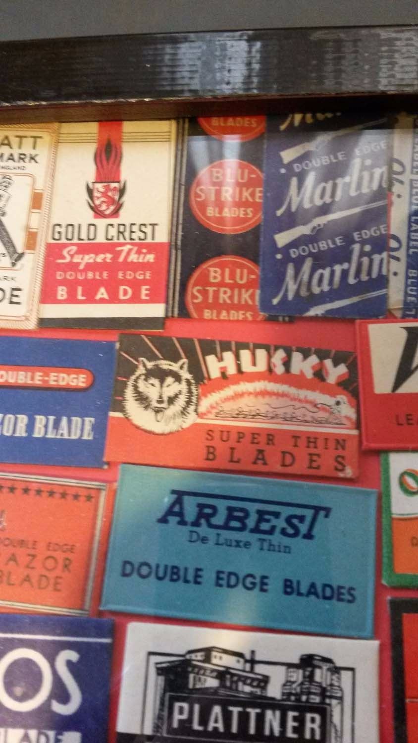 Vintage Razor Blade Boxes In Frame (150+ Boxes)