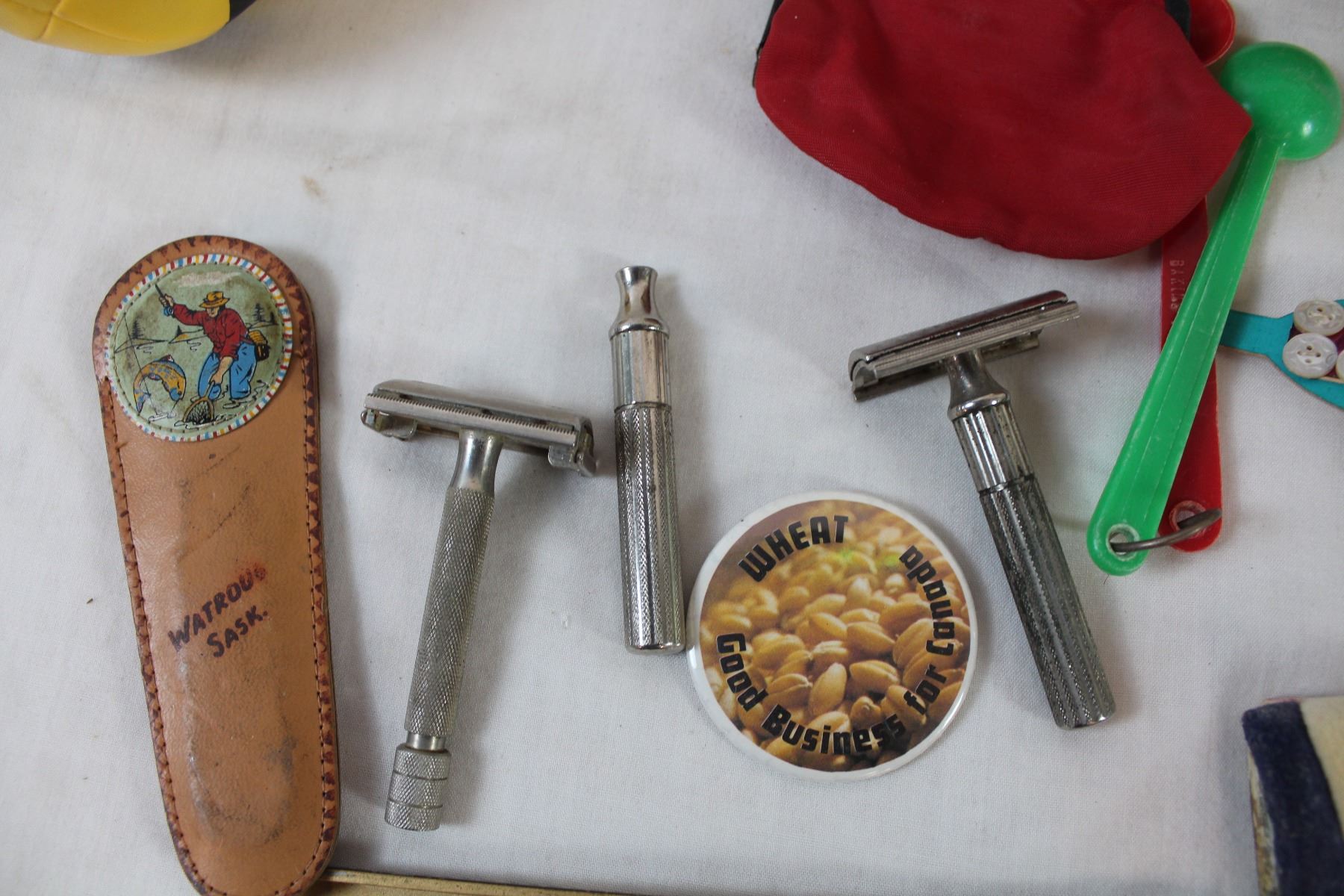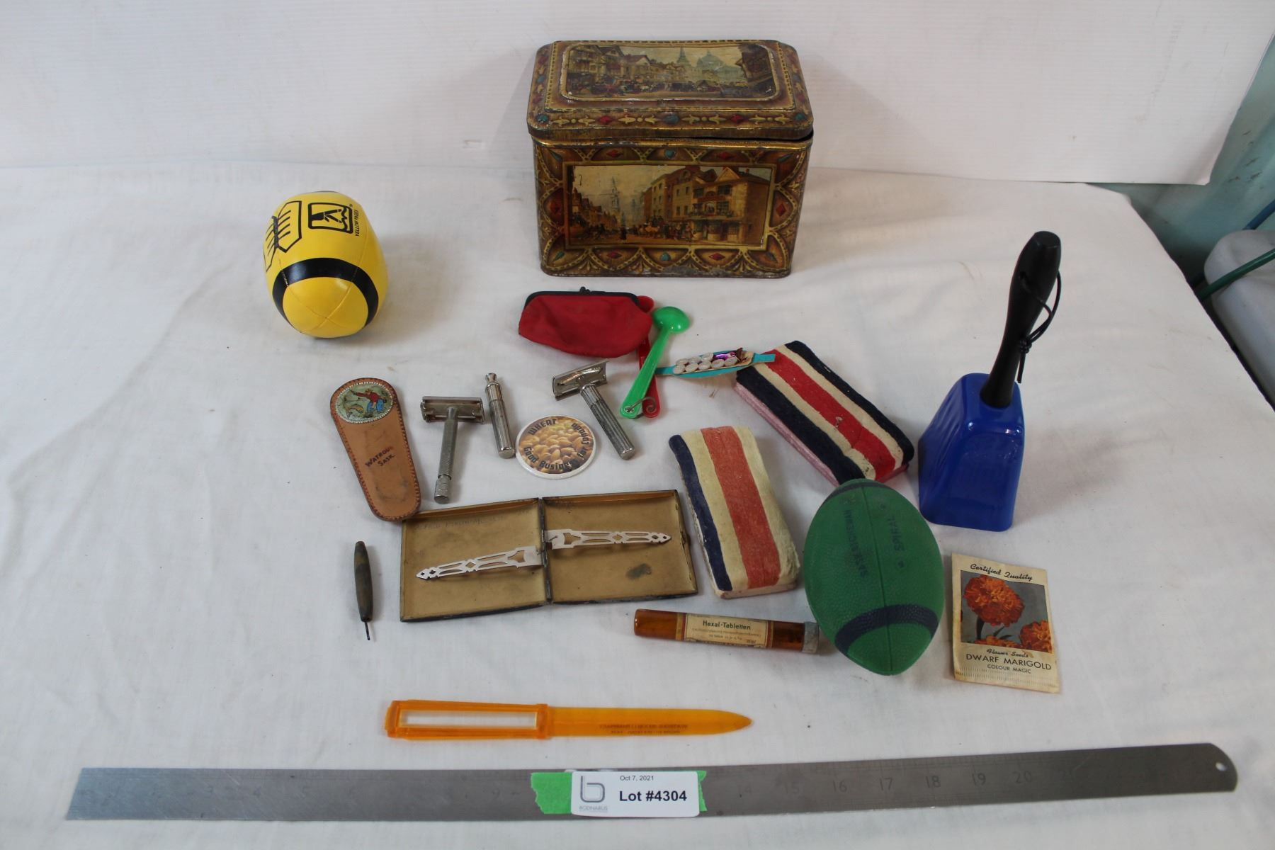 Vintage Razors, Tofee Tin, Watrous SK leather handcrafted item, misc