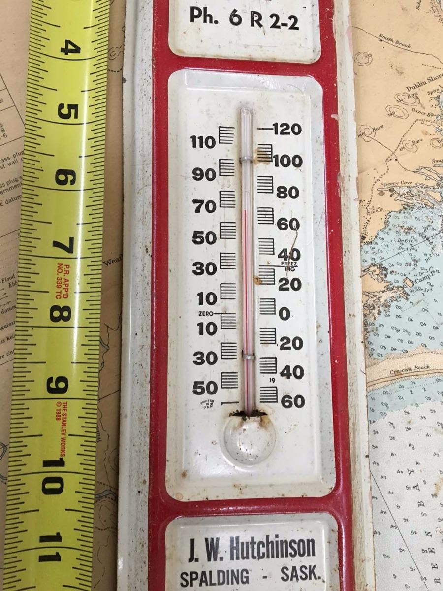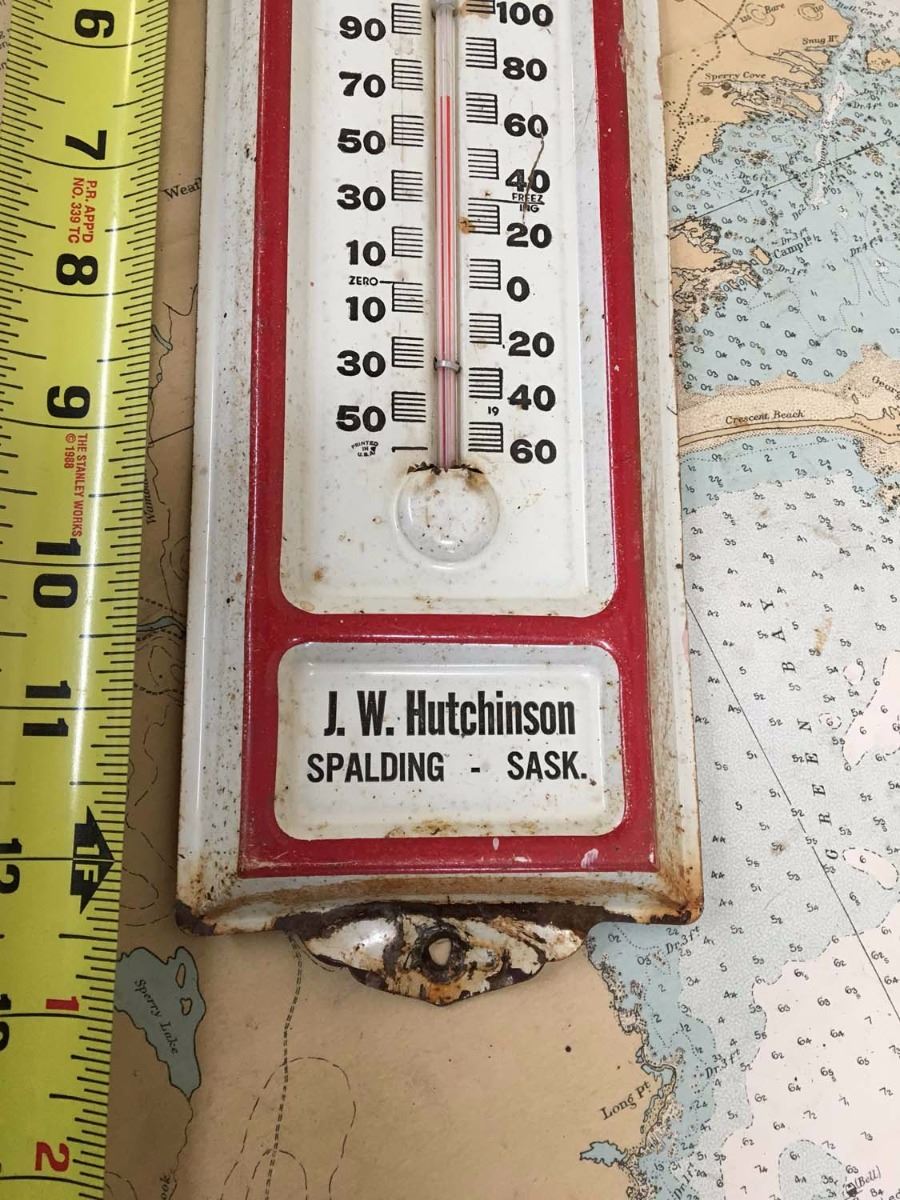 Vintage Red & White Stores Spalding Saskatchewan Advertising Thermometer