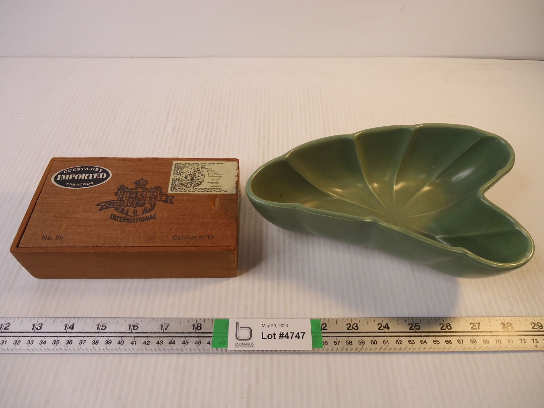 Vintage Regal USA 316 Art Pottery Green Leaf and Cigar Box