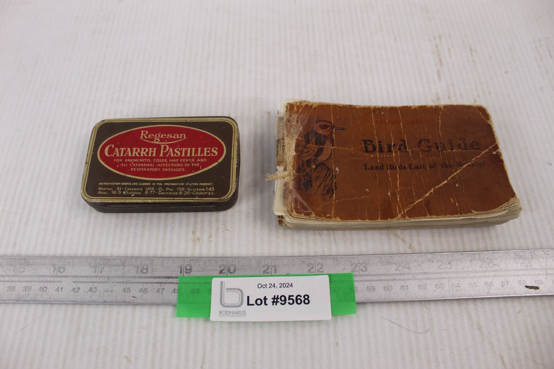 Vintage Regesan Catarrh Pastilles Tin, Vintage Bird Guide Book