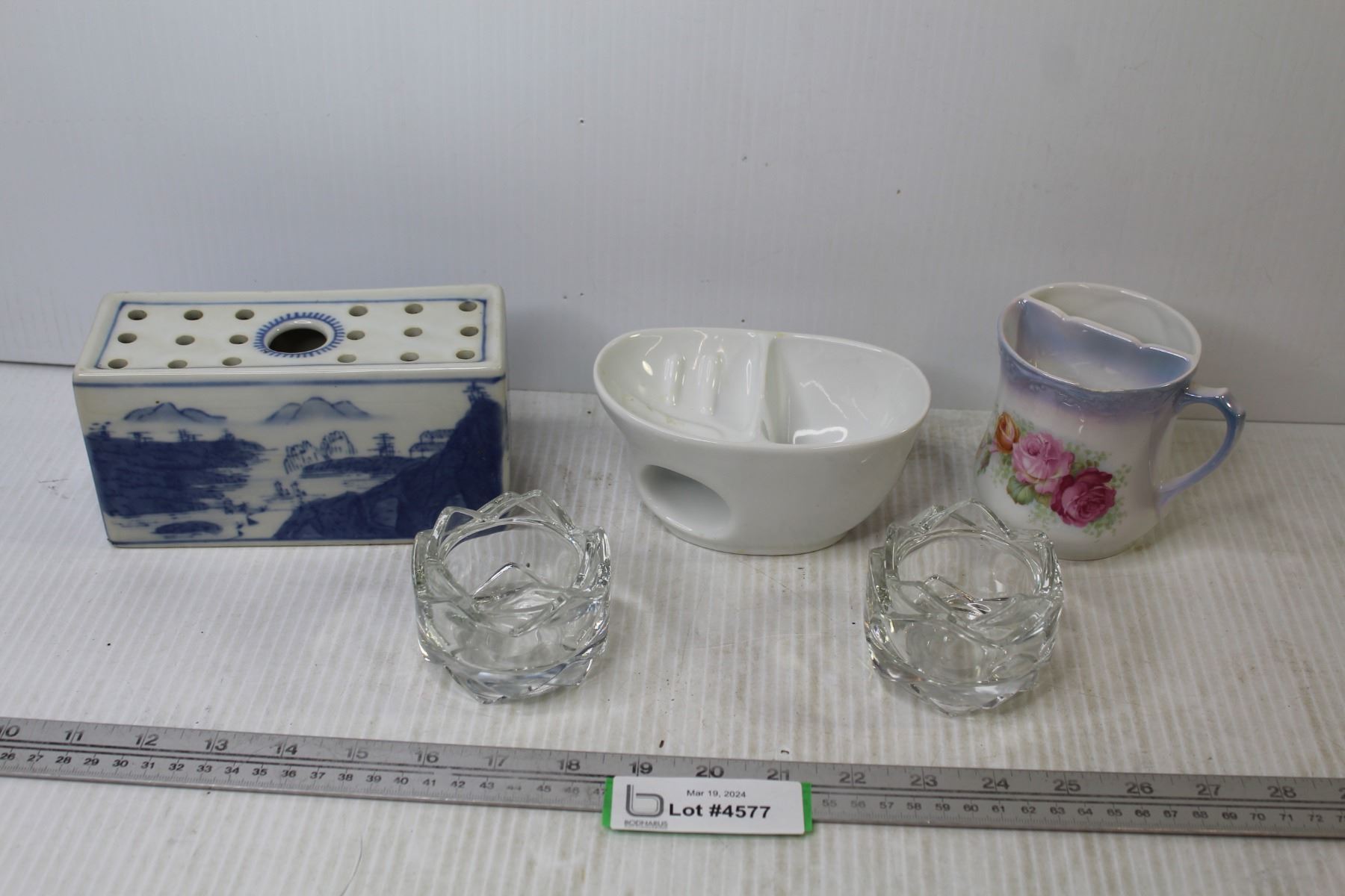 Vintage Shaving Cup w/Chip - (2) Glass Candle Holders - China Holder - China Brush Holder