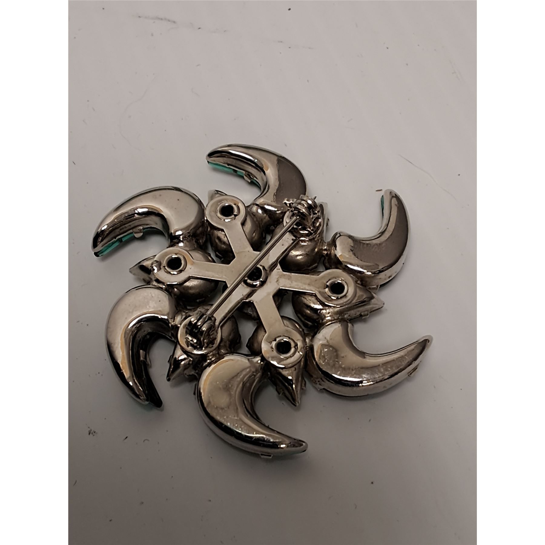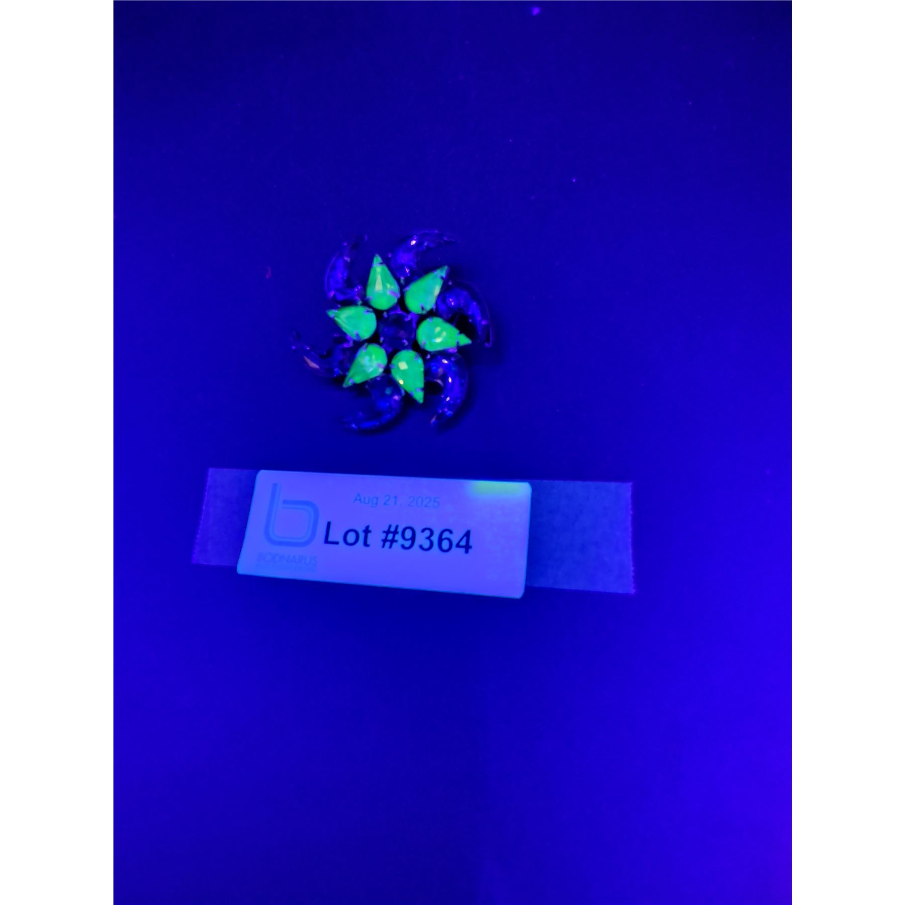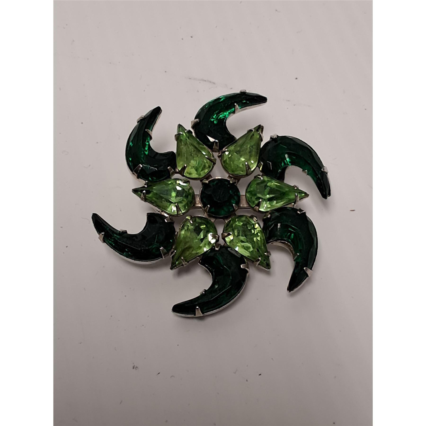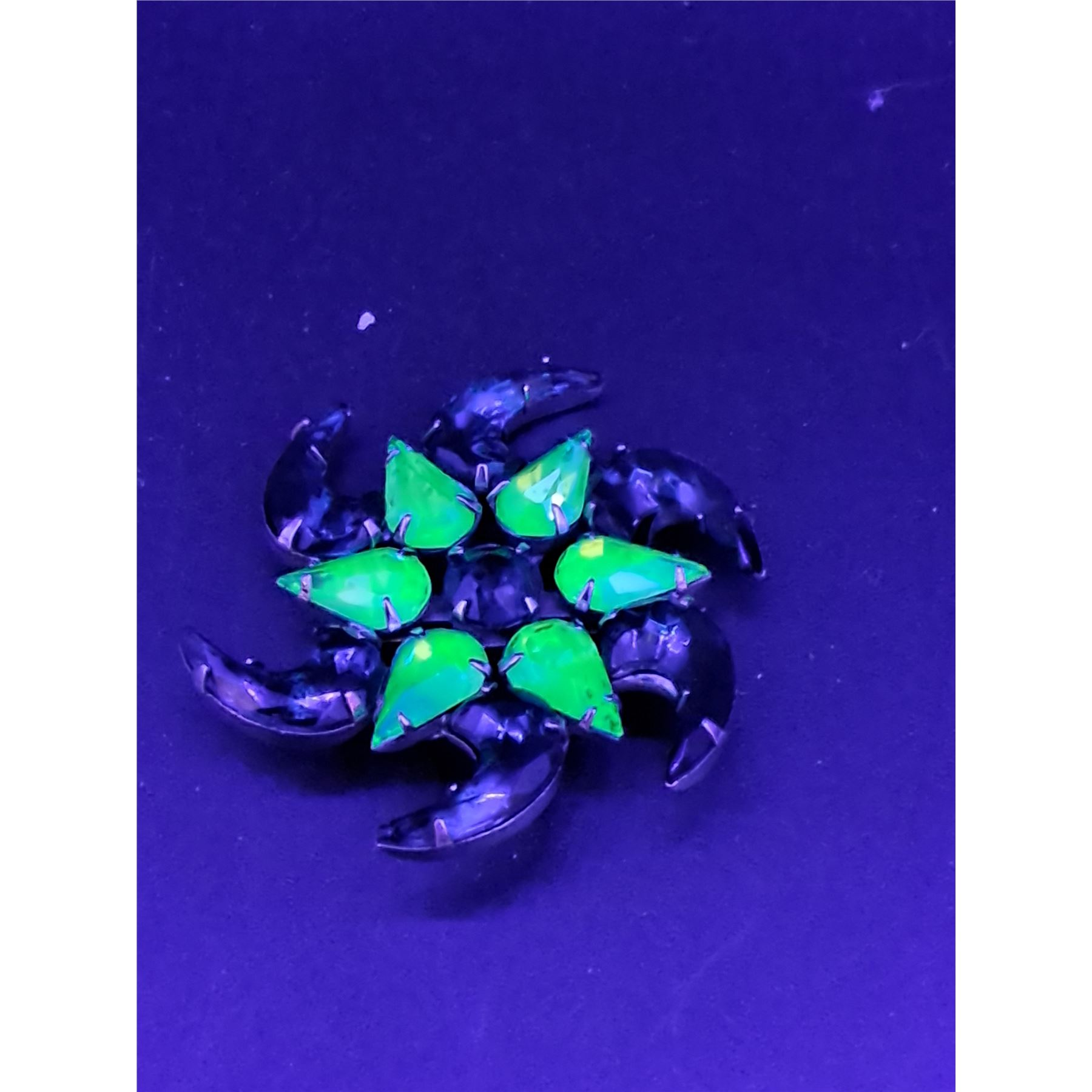 Vintage Spiral Patterned Uranium & Colored Jeweled Brooch Jewelry- 2  Diameter
