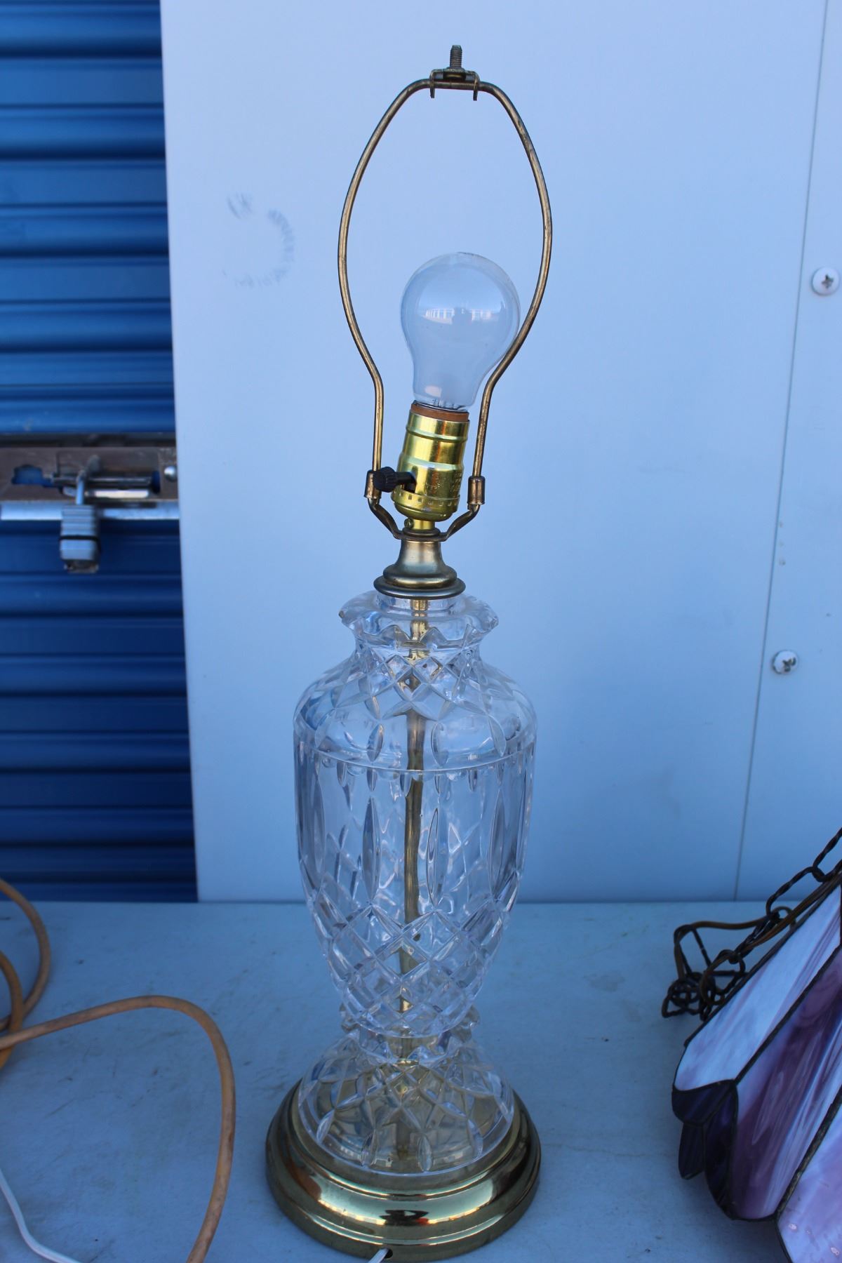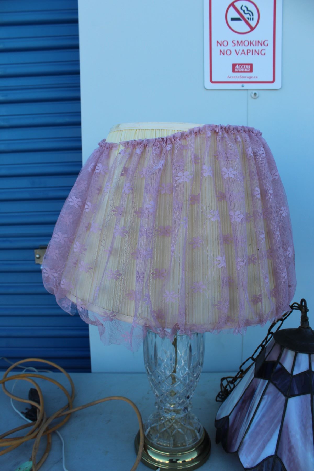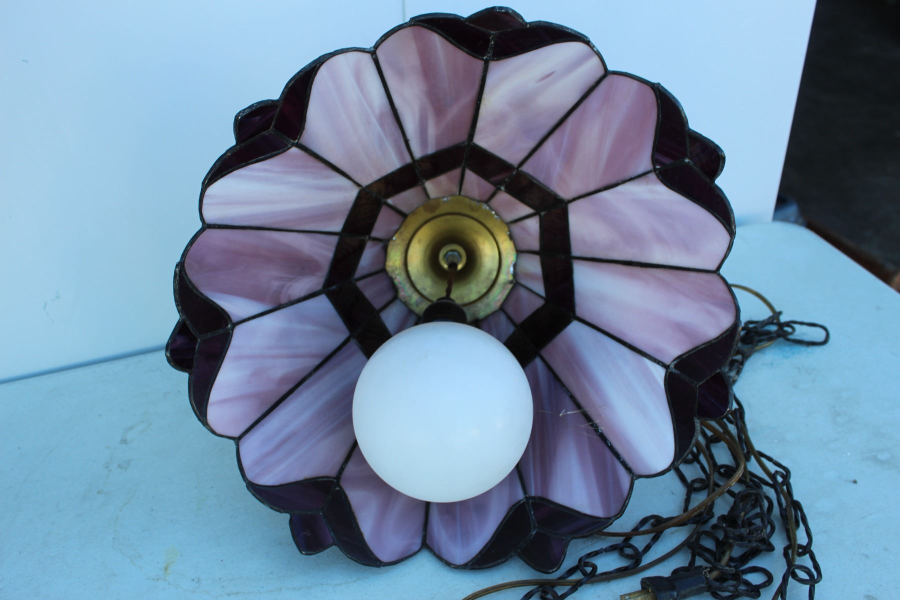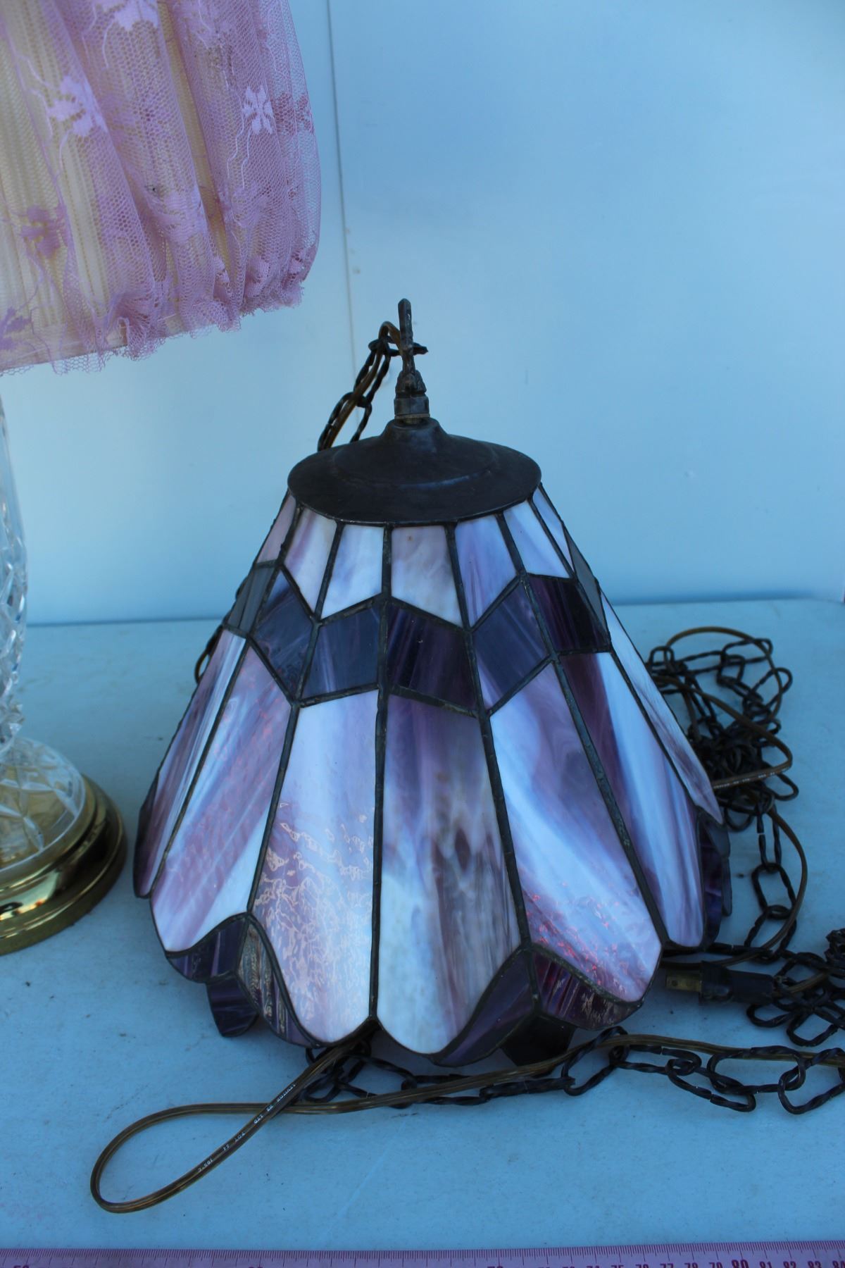 ***Vintage Stained Glass Swag Lamp & Glass w/Tulle Shade Lamp
