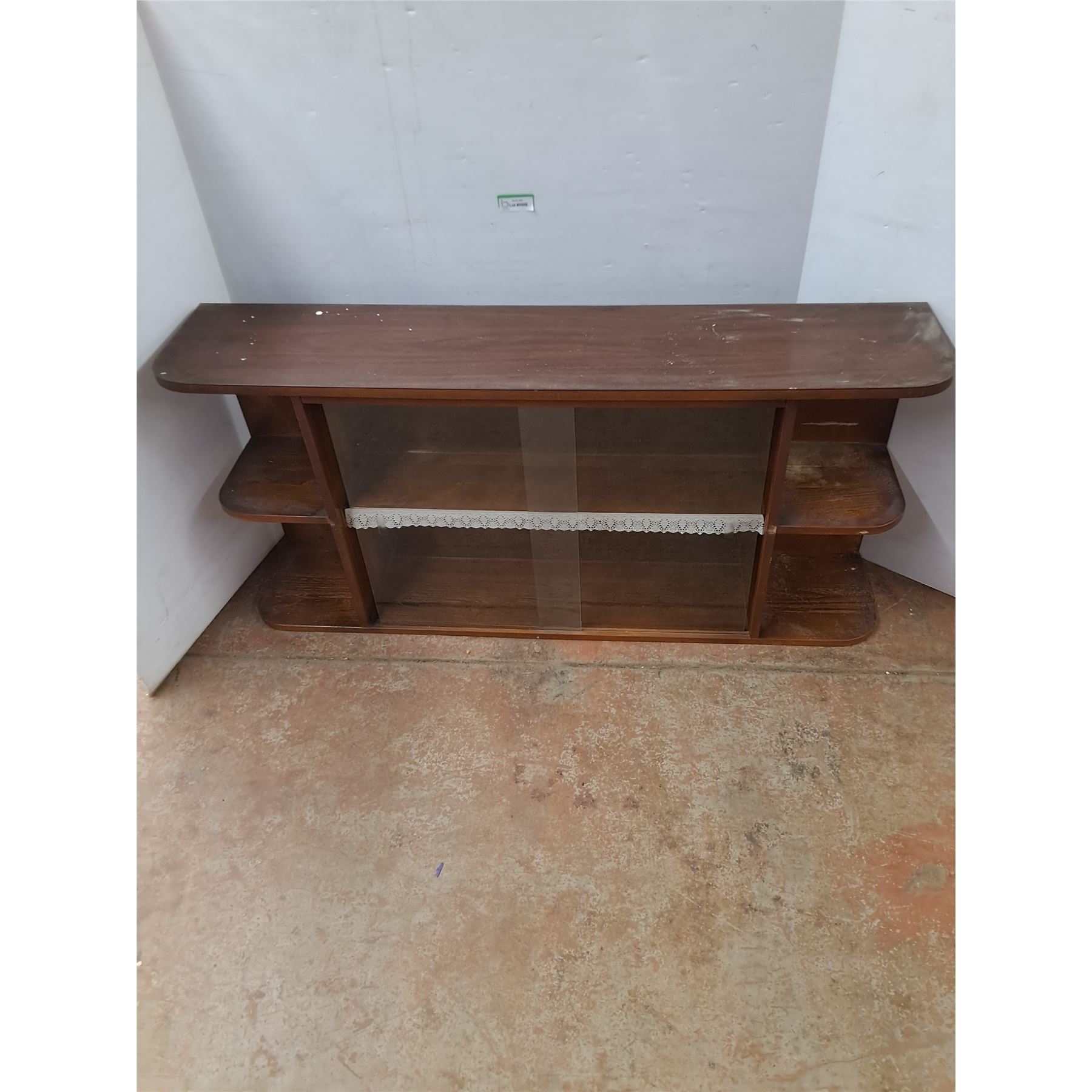 56x12x26 1/2" Sliding Glass. Slight damage to finish as pictured.