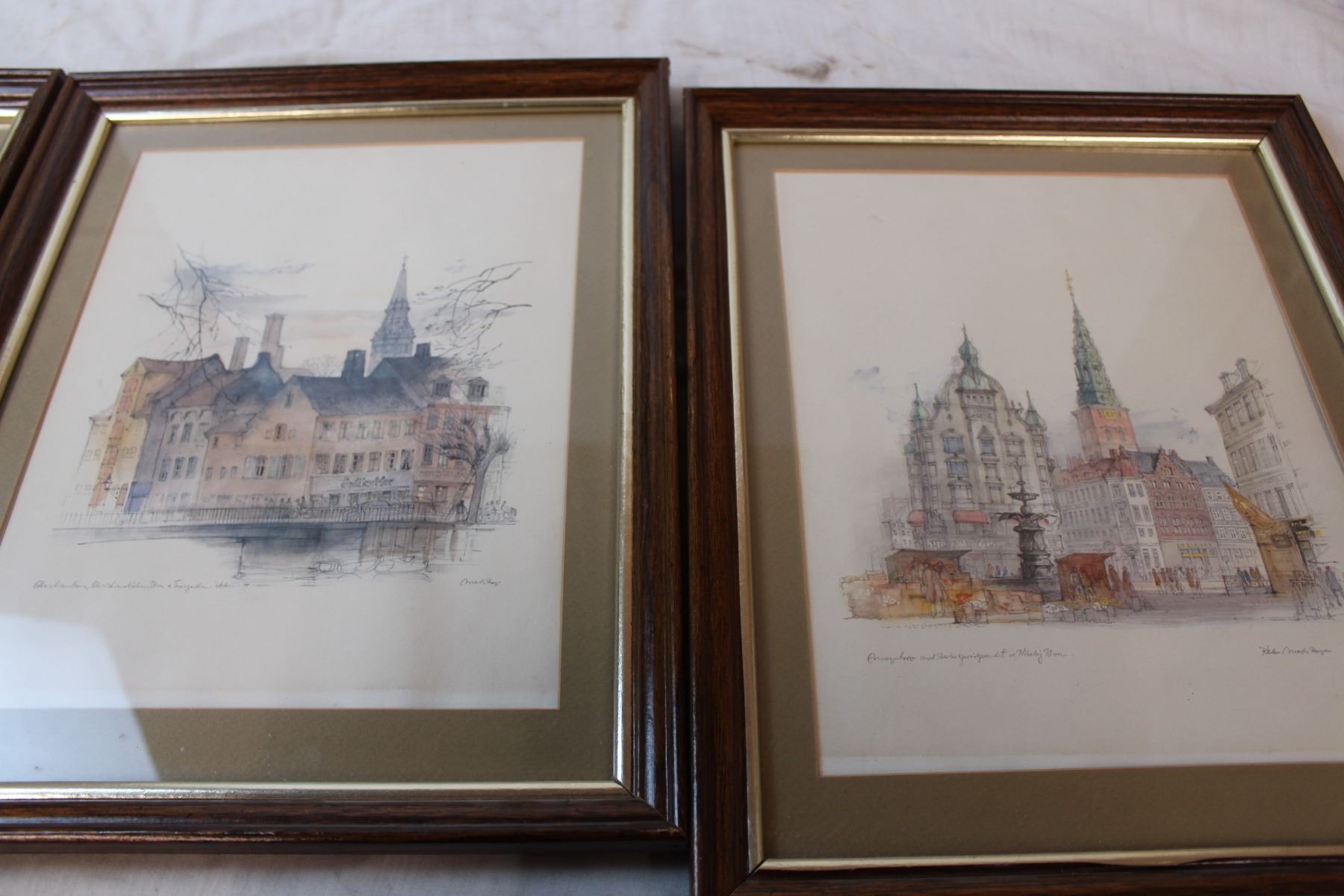 Vintage TV dinner trays, three framed art prints