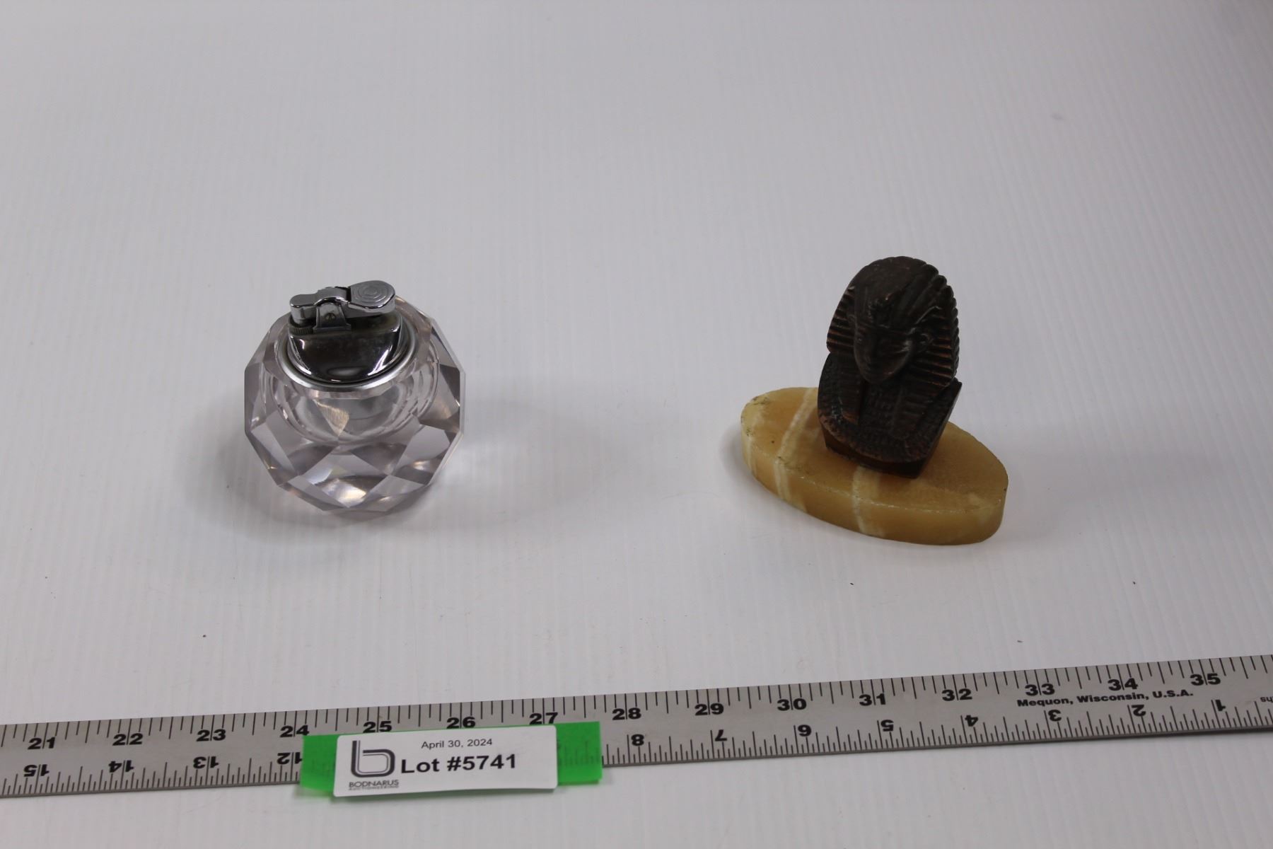 Vintage Table Lighter & Brass/Bronze Egyptian Pharaoh Statue on Marble Base