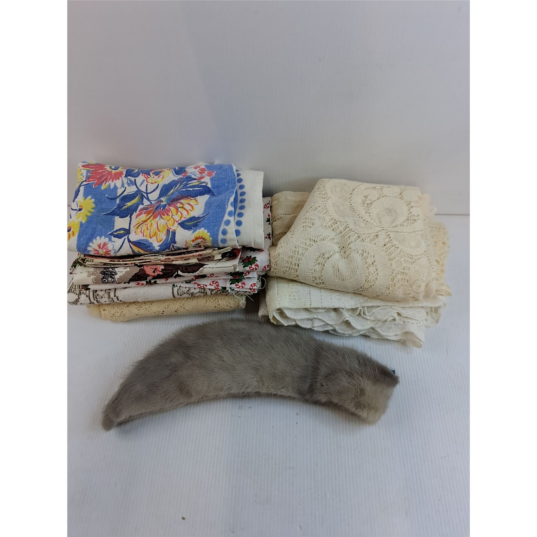 Vintage Table Linens - Some Stains, Faux Fur Scarf