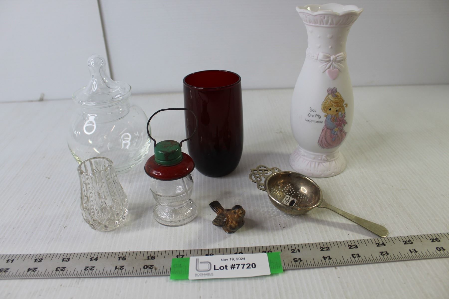 Vintage Tea Strainer, Precious Moments "You Are My Happiness" Vase, Misc.