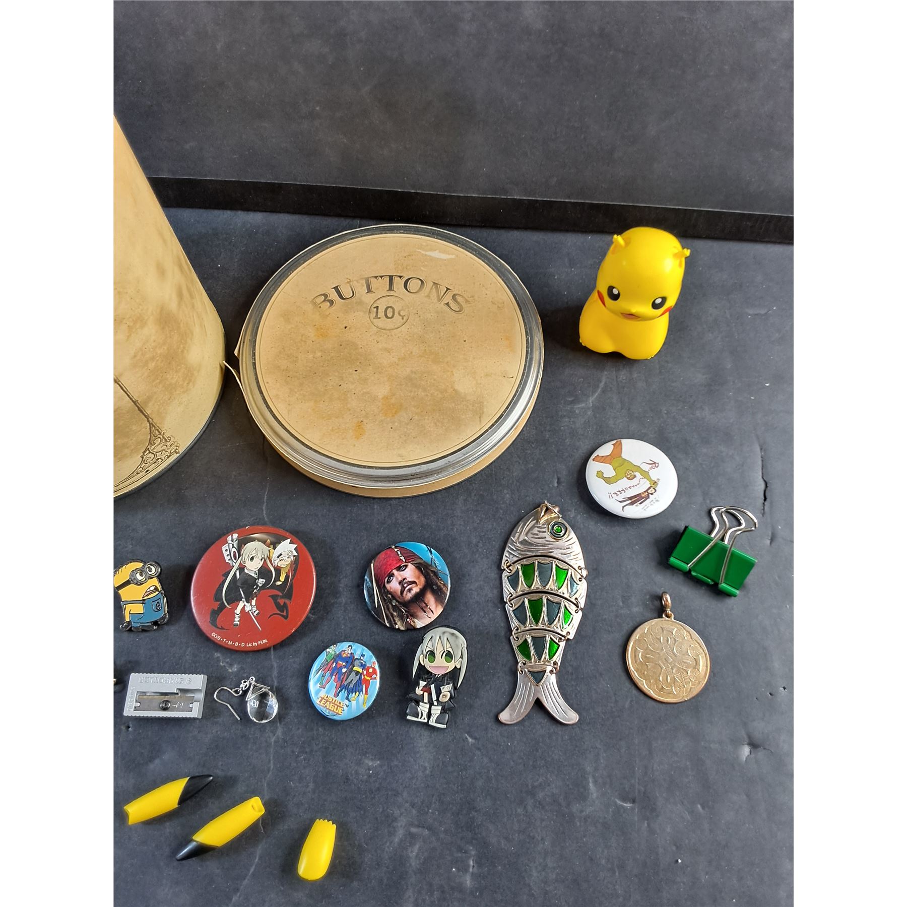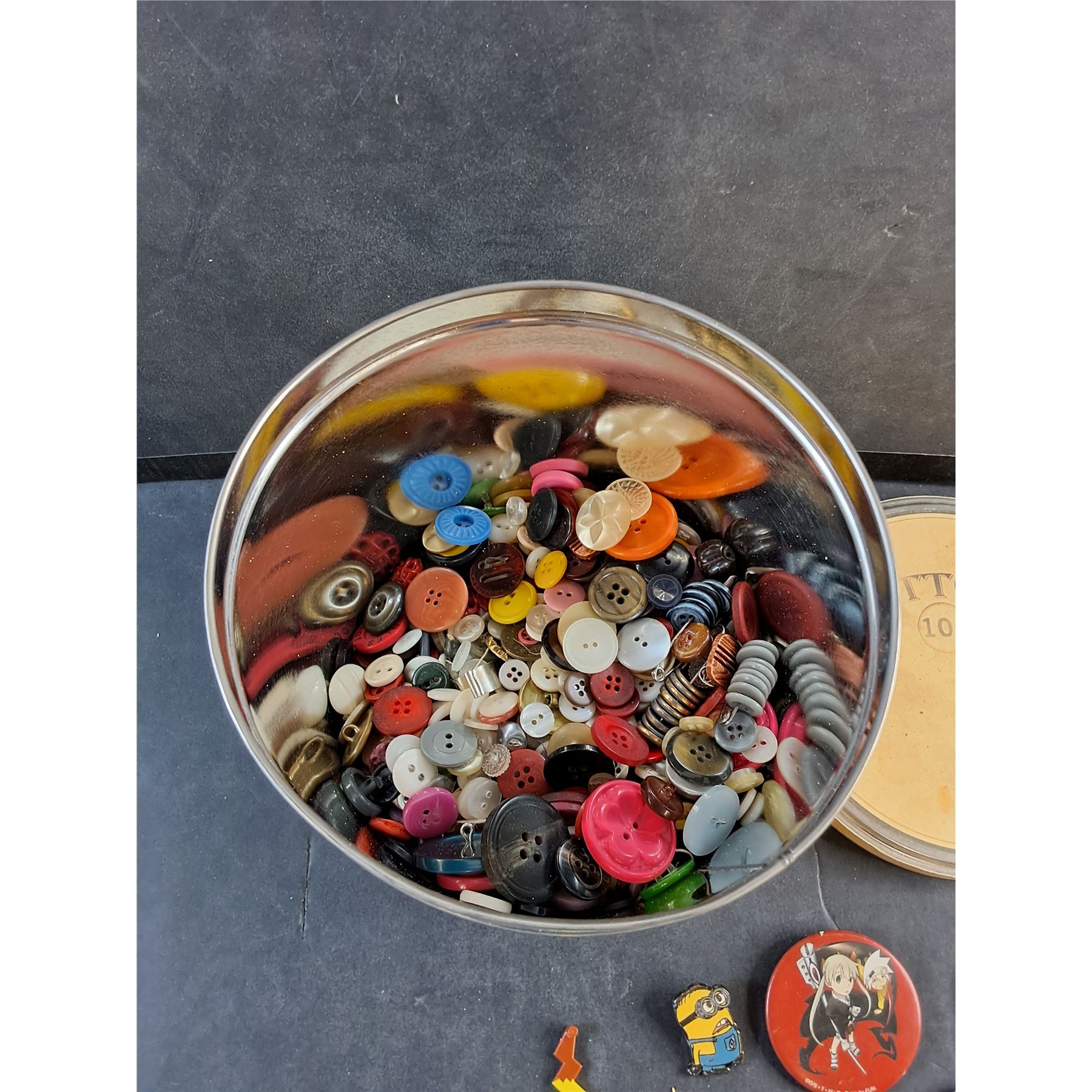 Vintage Tin of Vintage Buttons, Pins, Shirt Pins, Earrings, Misc