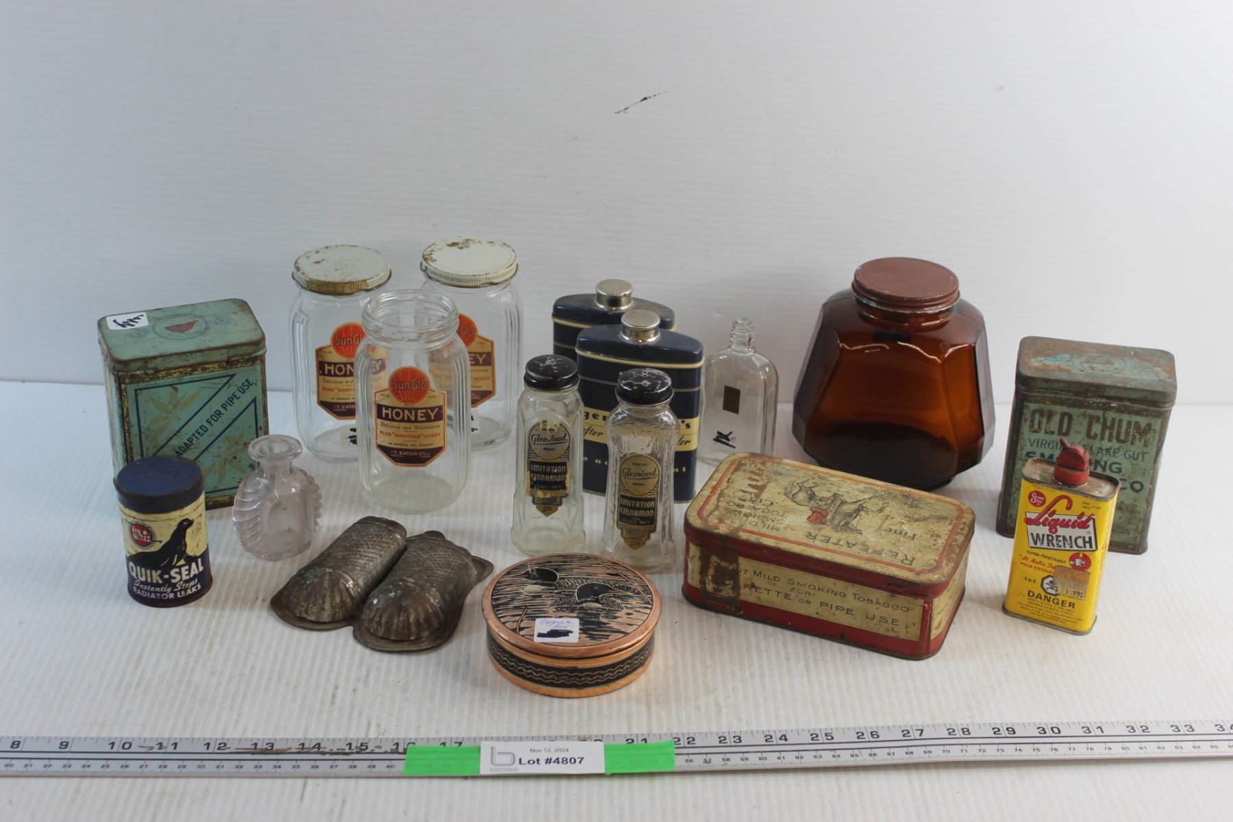 Vintage Tobacco Tins, Jars, Liquor Flasks and Misc.