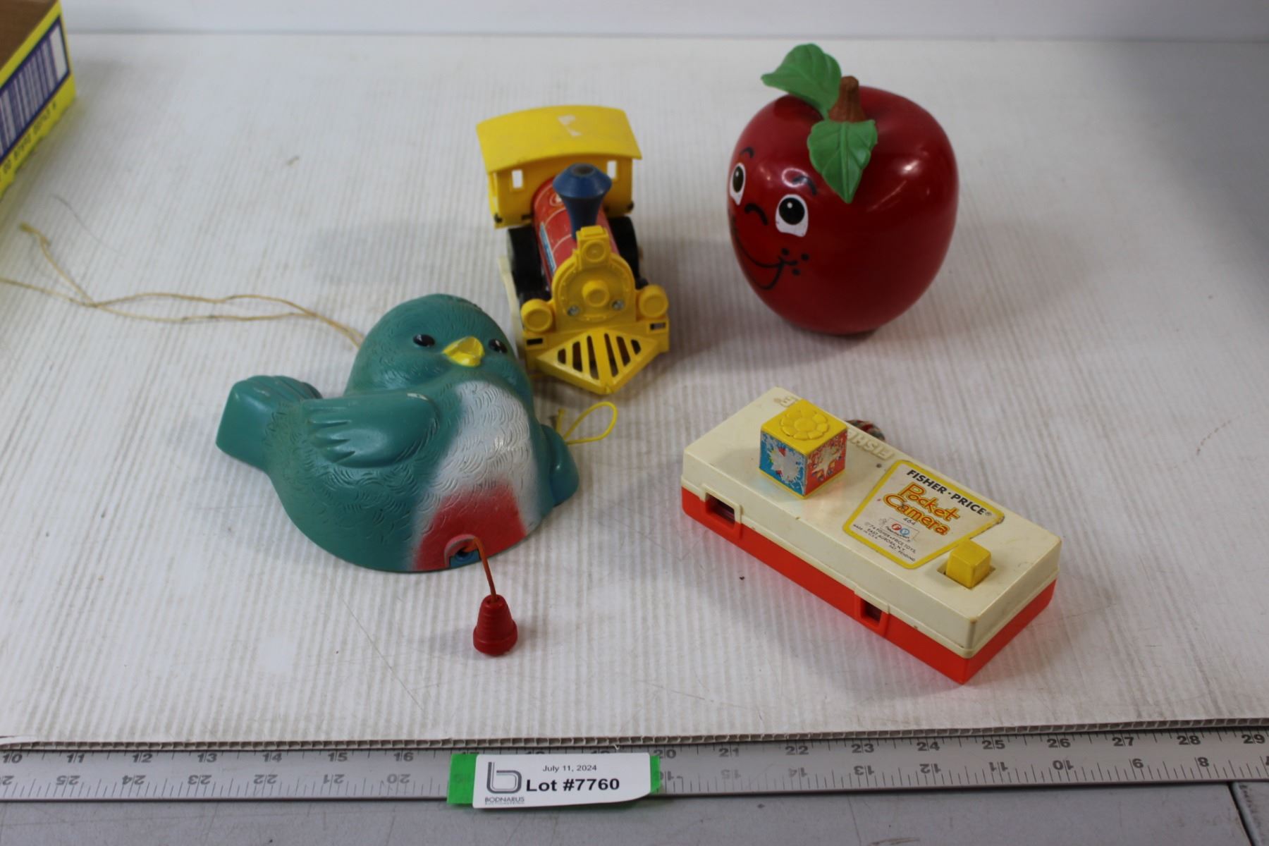 Vintage Toys - Toy Train, Toy Camera, Singing Bird, Ringing Apple
