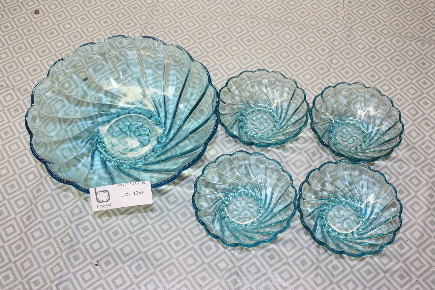 Vintage Turquoise Bowl Set 1 Large, 4 Small