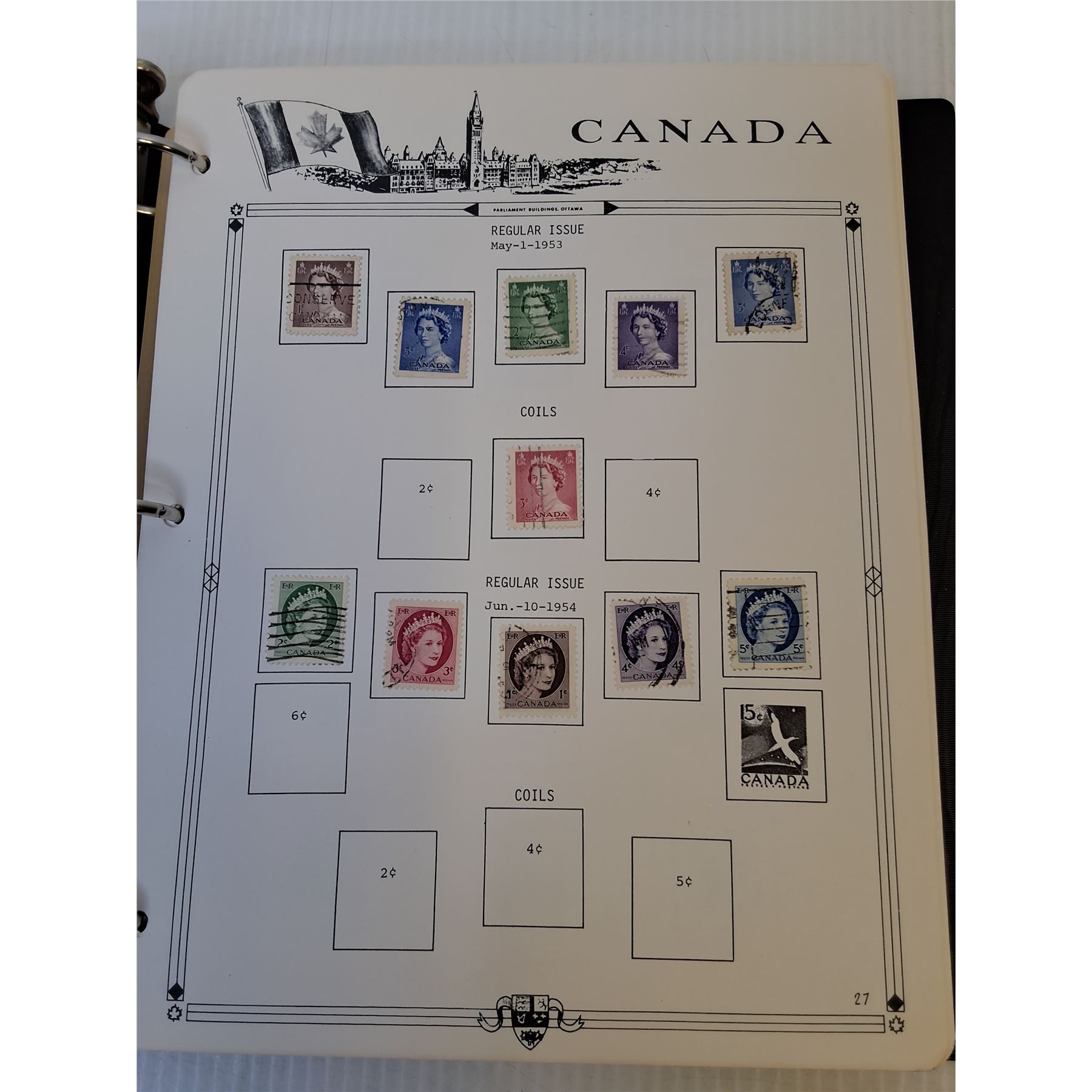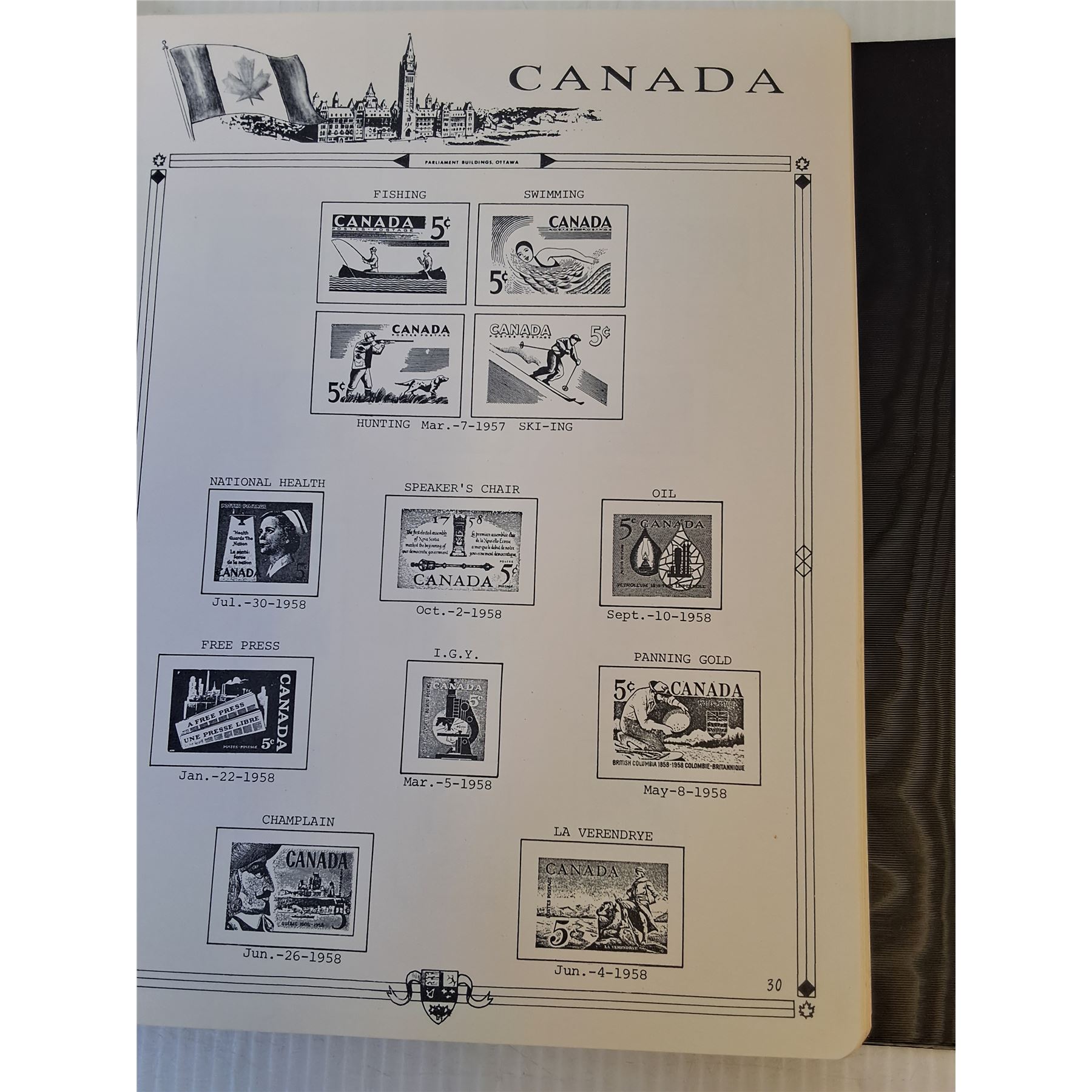 Vintage Uncirculated Canadian Parliament Stamp Collection Binder w/ Partial Pages