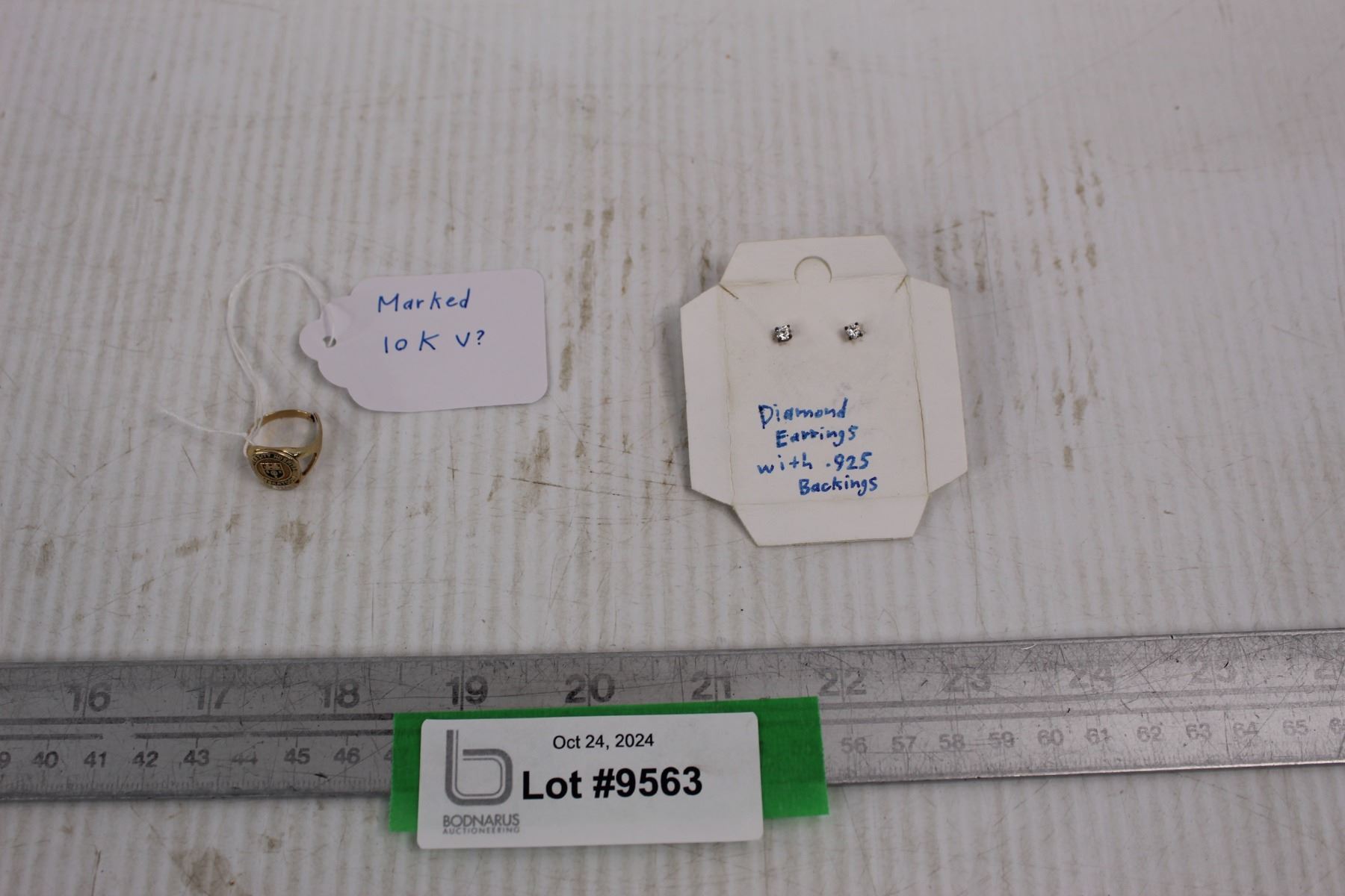 ^Vintage University Hospital Saskatoon 15 Years 10k Gold Ring- Cracked , Dimond w/ 925 Backings