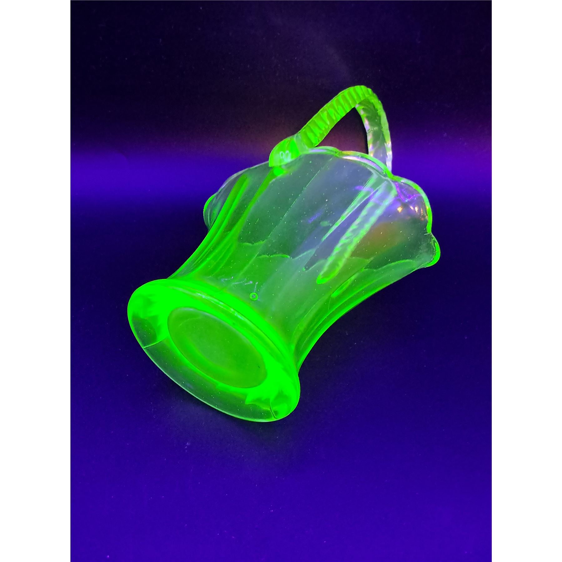 Vintage Uranium Glass Bridal Basket w/Twisted Handle - 8" x 5" x 3"