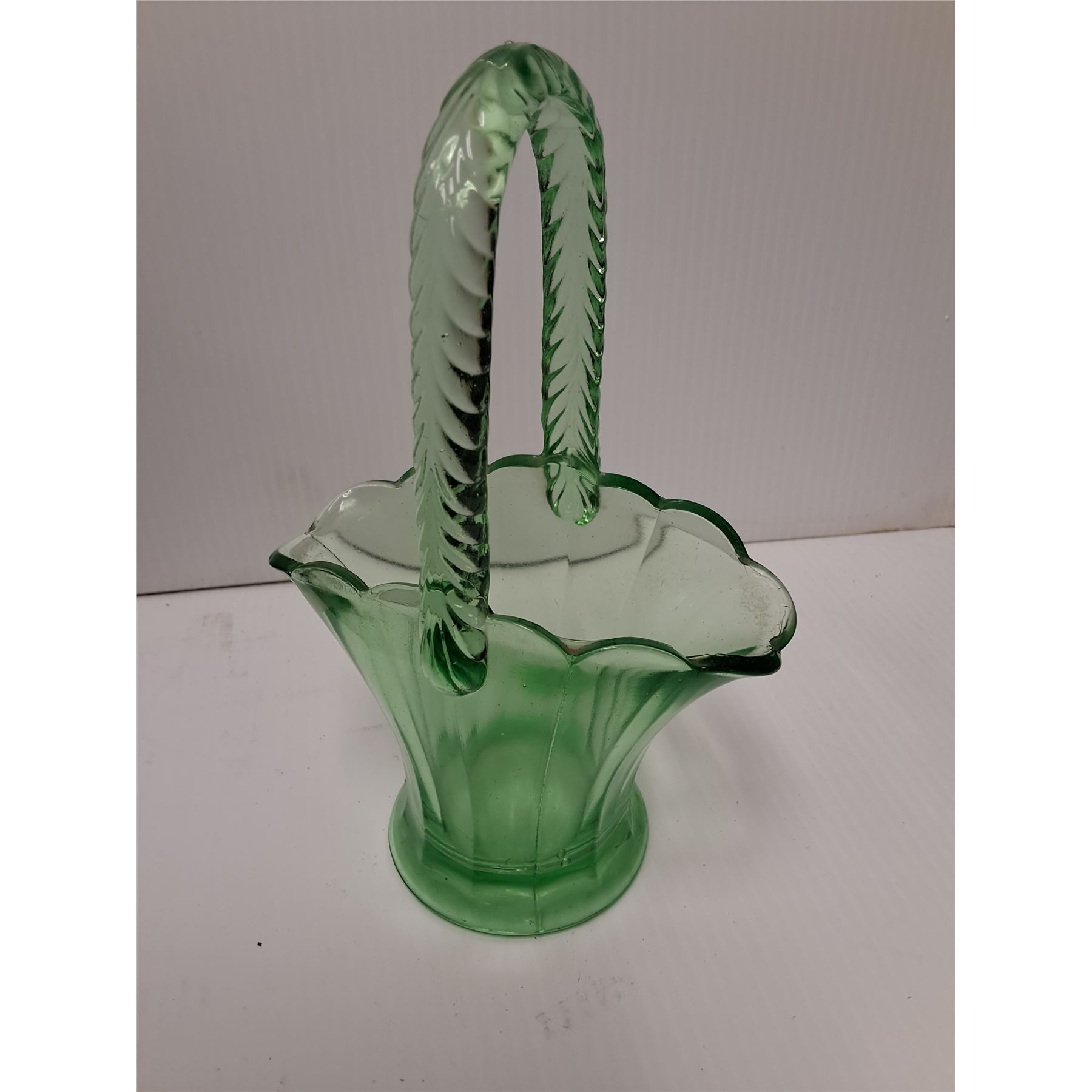 Vintage Uranium Glass Bridal Basket w/Twisted Handle - 8  x 5  x 3