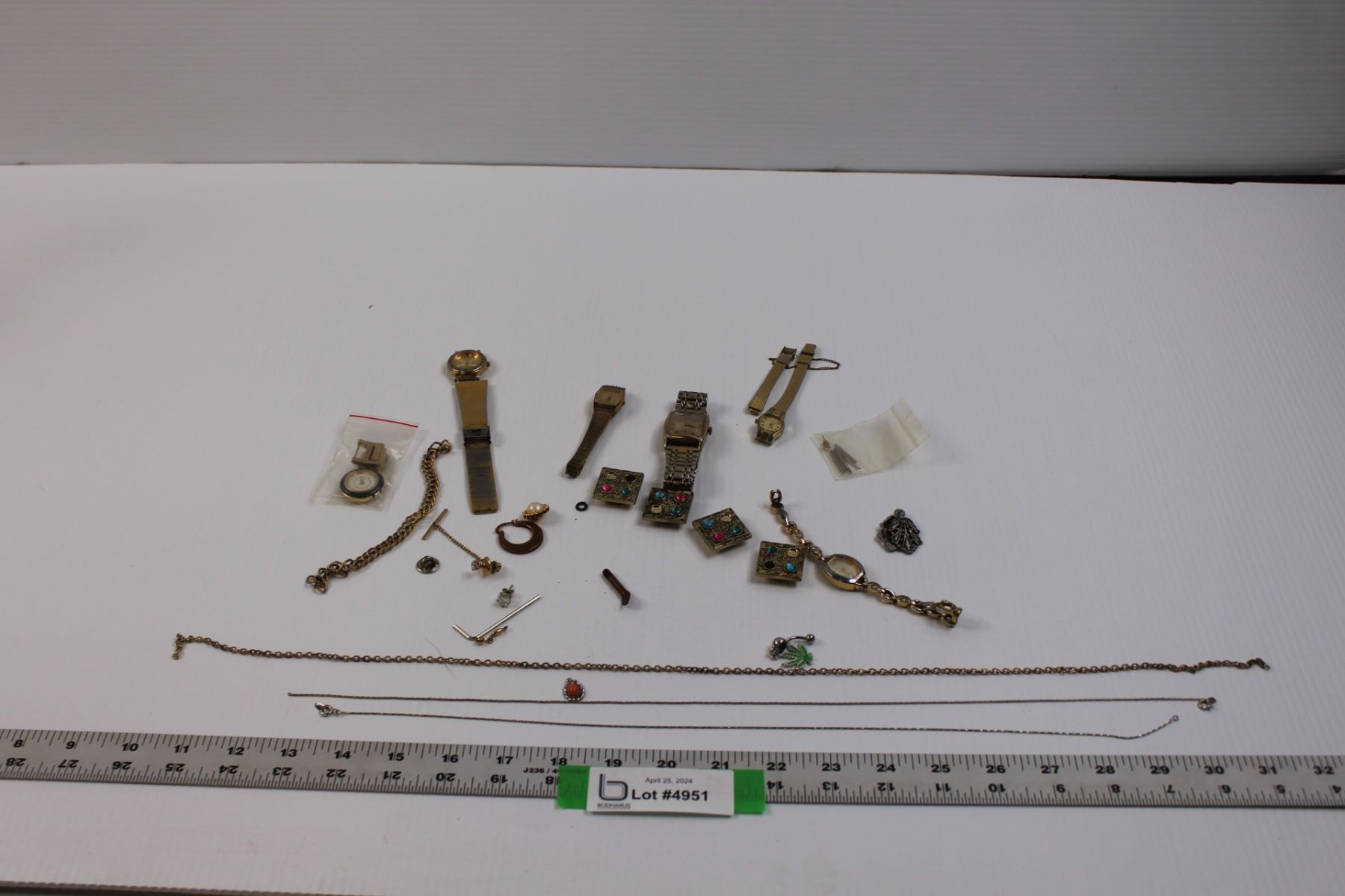 Vintage Watches, Watch Parts, Cuff Links, Necklaces etc. - As is Condition (