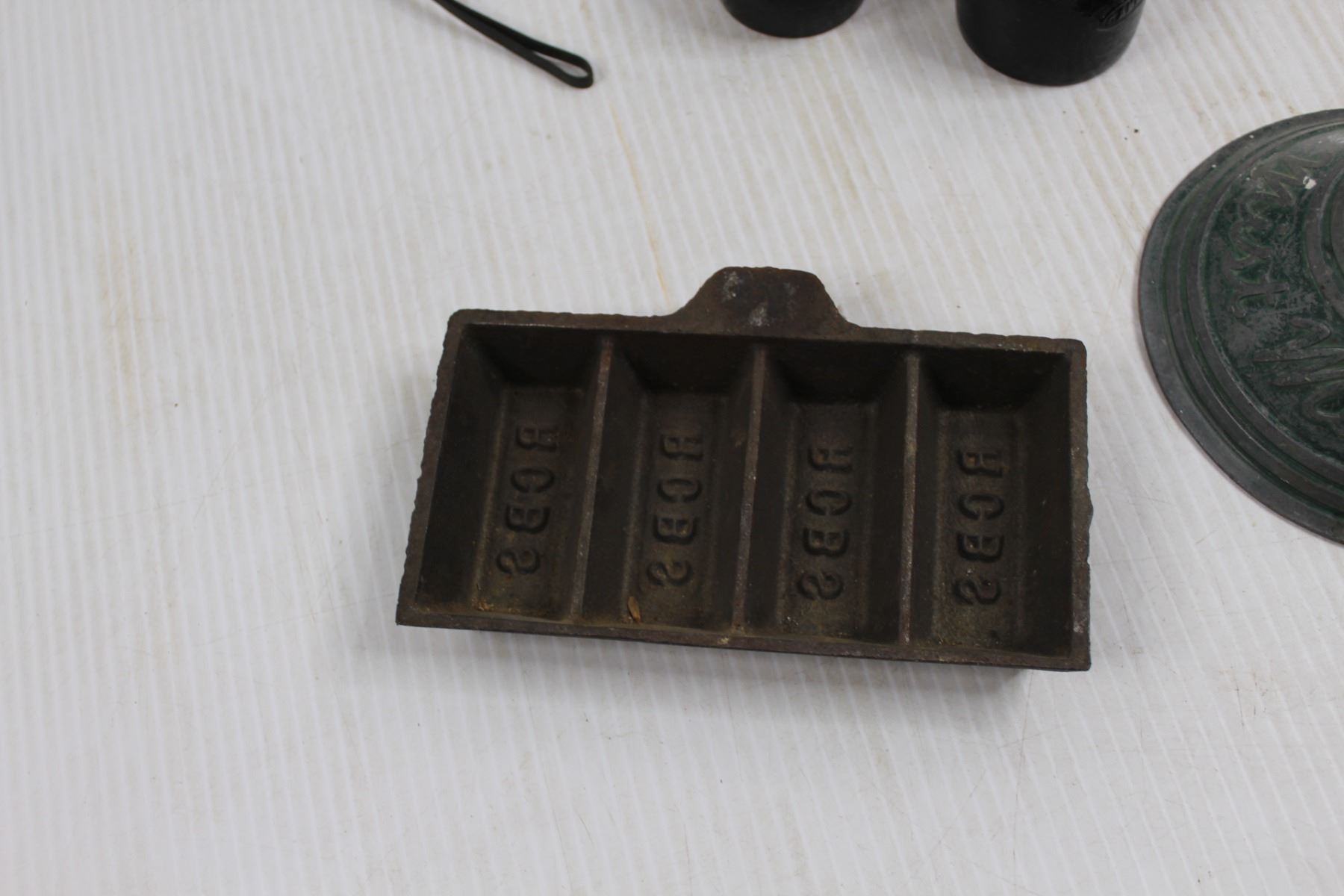 Vintage Water Pan, Cups, Mist Master Sprinkler, Inget Mold Carpenters Brace & Tape Measure