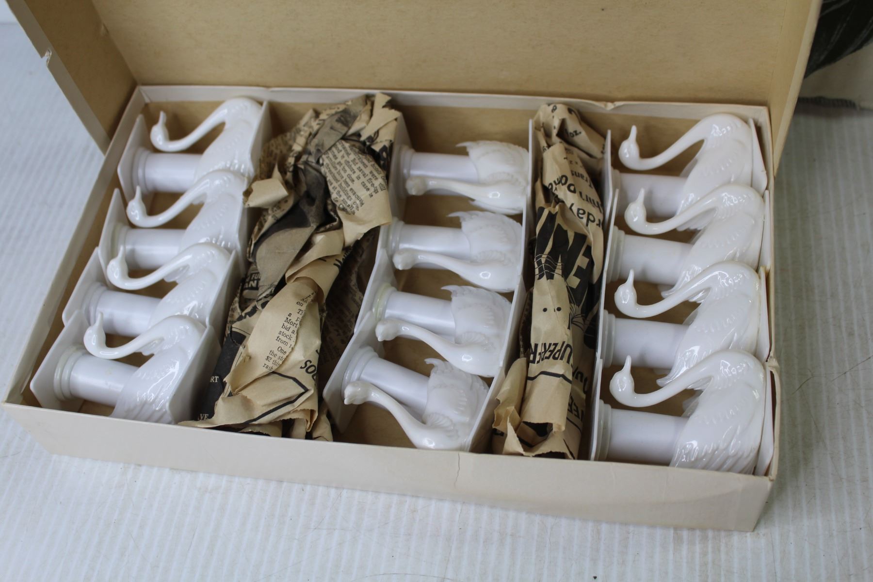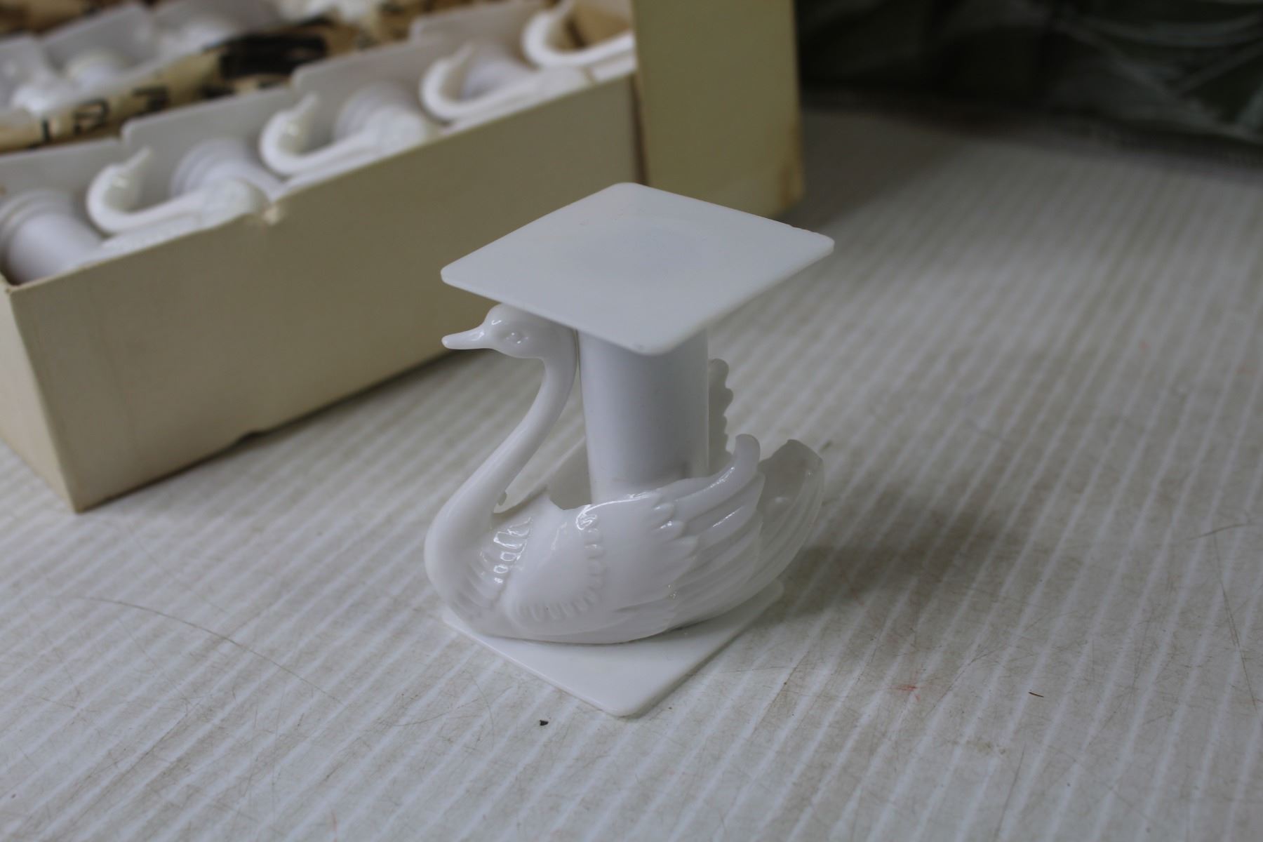Vintage Wedding Cake Swan Pillars - (2) Candle Holders - Crystal Dishes - Pillow