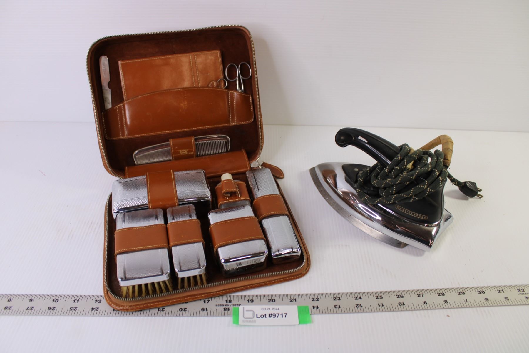 Vintage Westing House Iron (working) - Vintage Men's 13 Pc Travel Kit (Made in England)