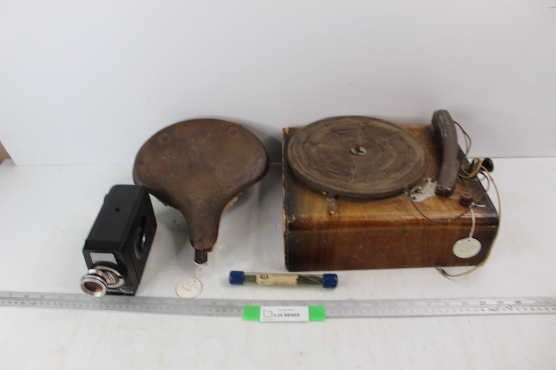 Vintage Wind Up Gramophone- As Is, Vintage Bicycle Seat, Misc.