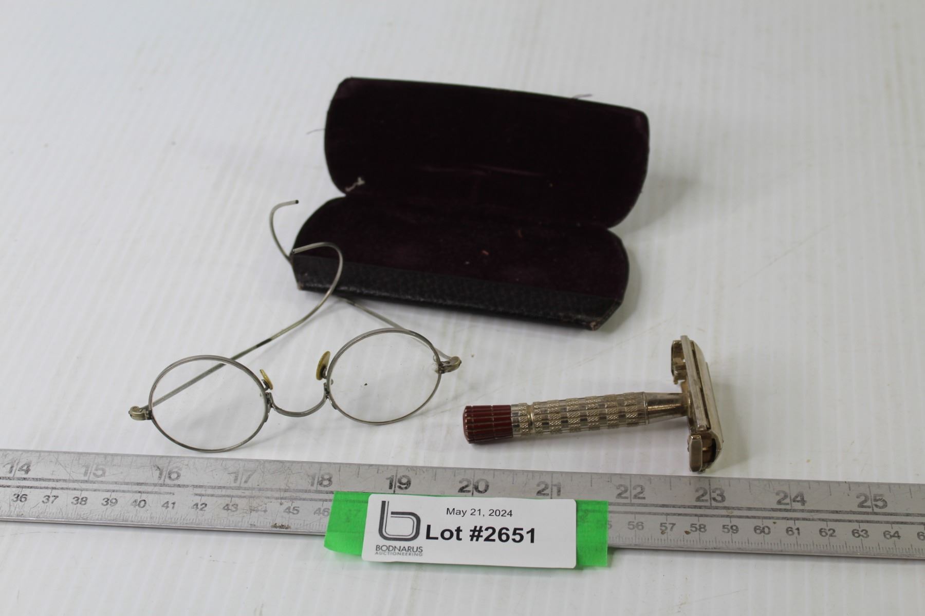 Vintage Wire Rim Glasses in Case - Vintage Razor