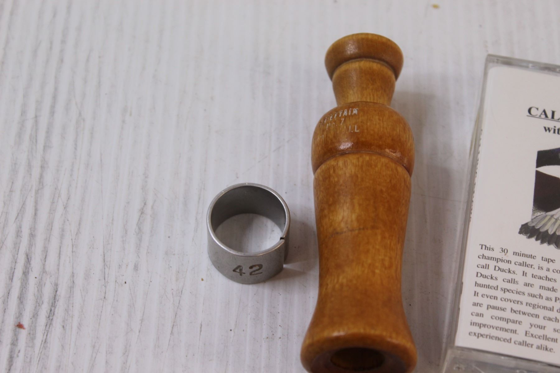 Vintage Wood Duck Call w/Cassette & Aluminum Bird Band Set
