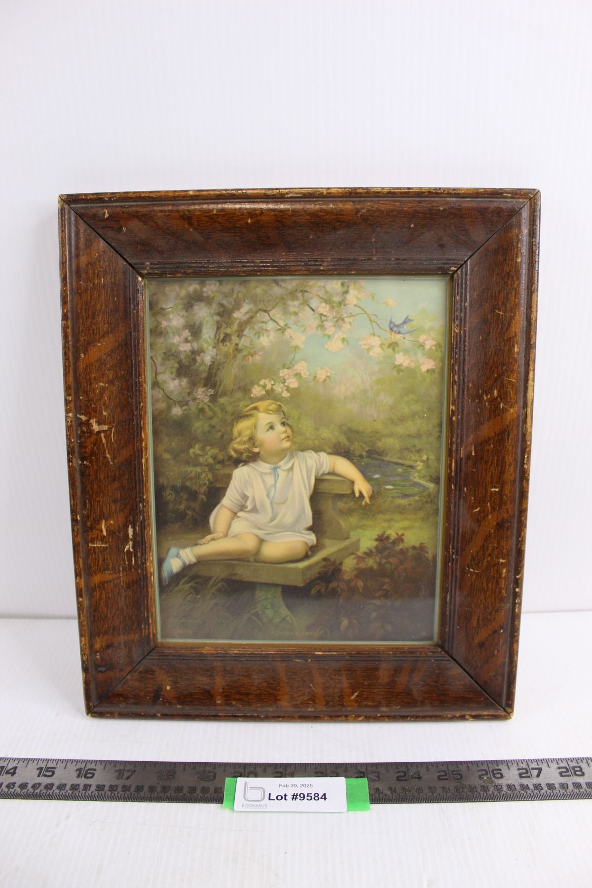 Vintage Wood Framed Wall Art 11.5" x 13.5"