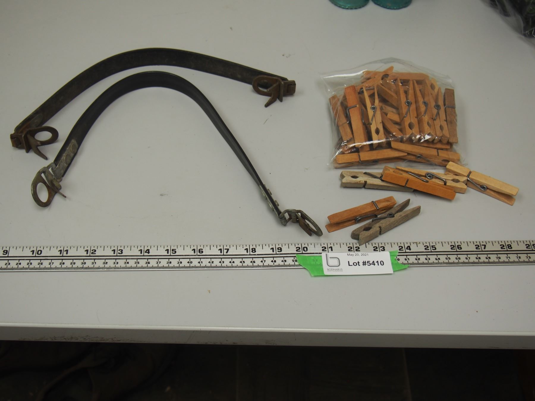 Vintage Wooden Clothes Pins Plus Battery Lifter Cables