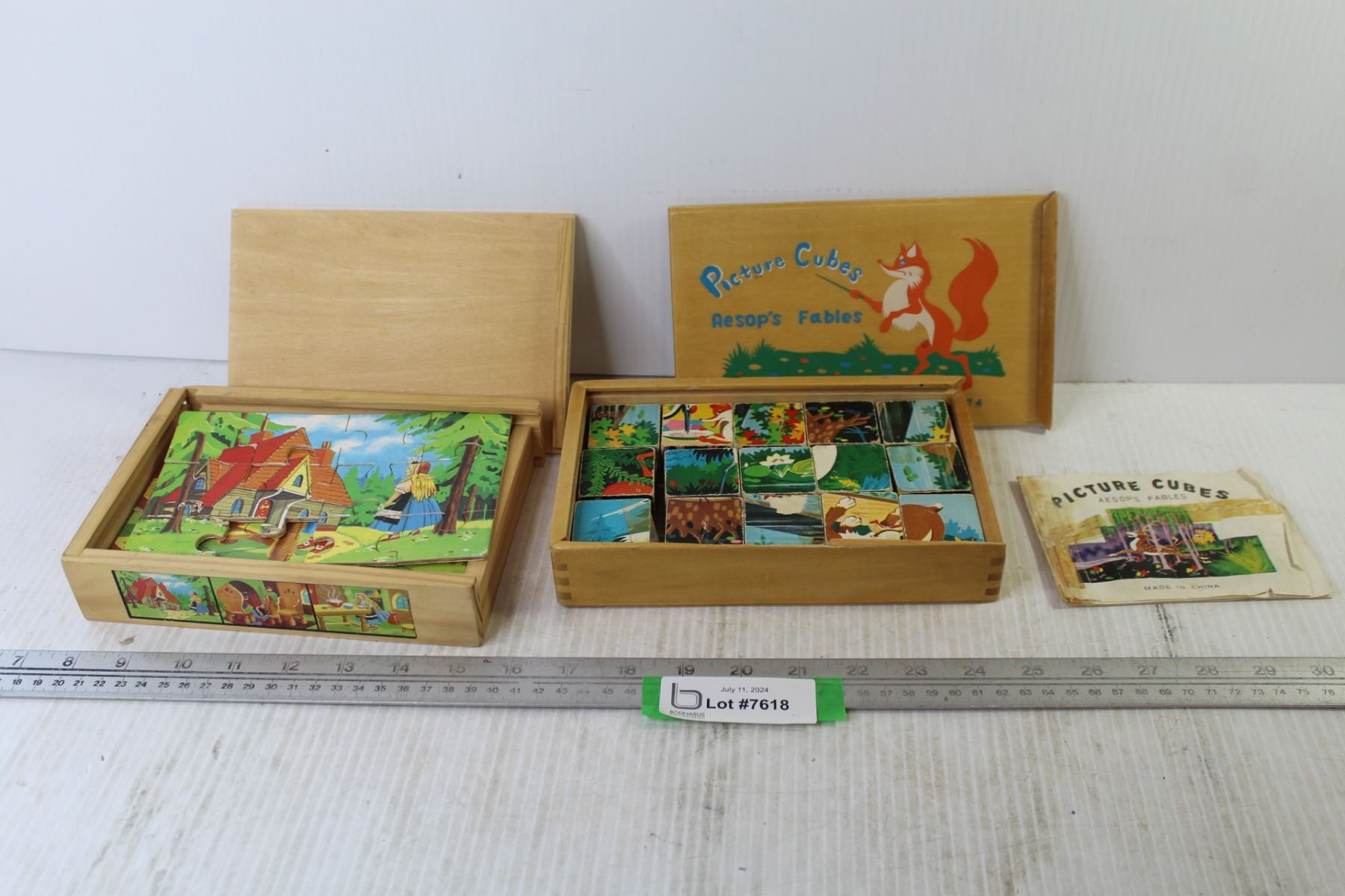 Vintage Wooden Picture Cubes - Wooden Puzzles in Box