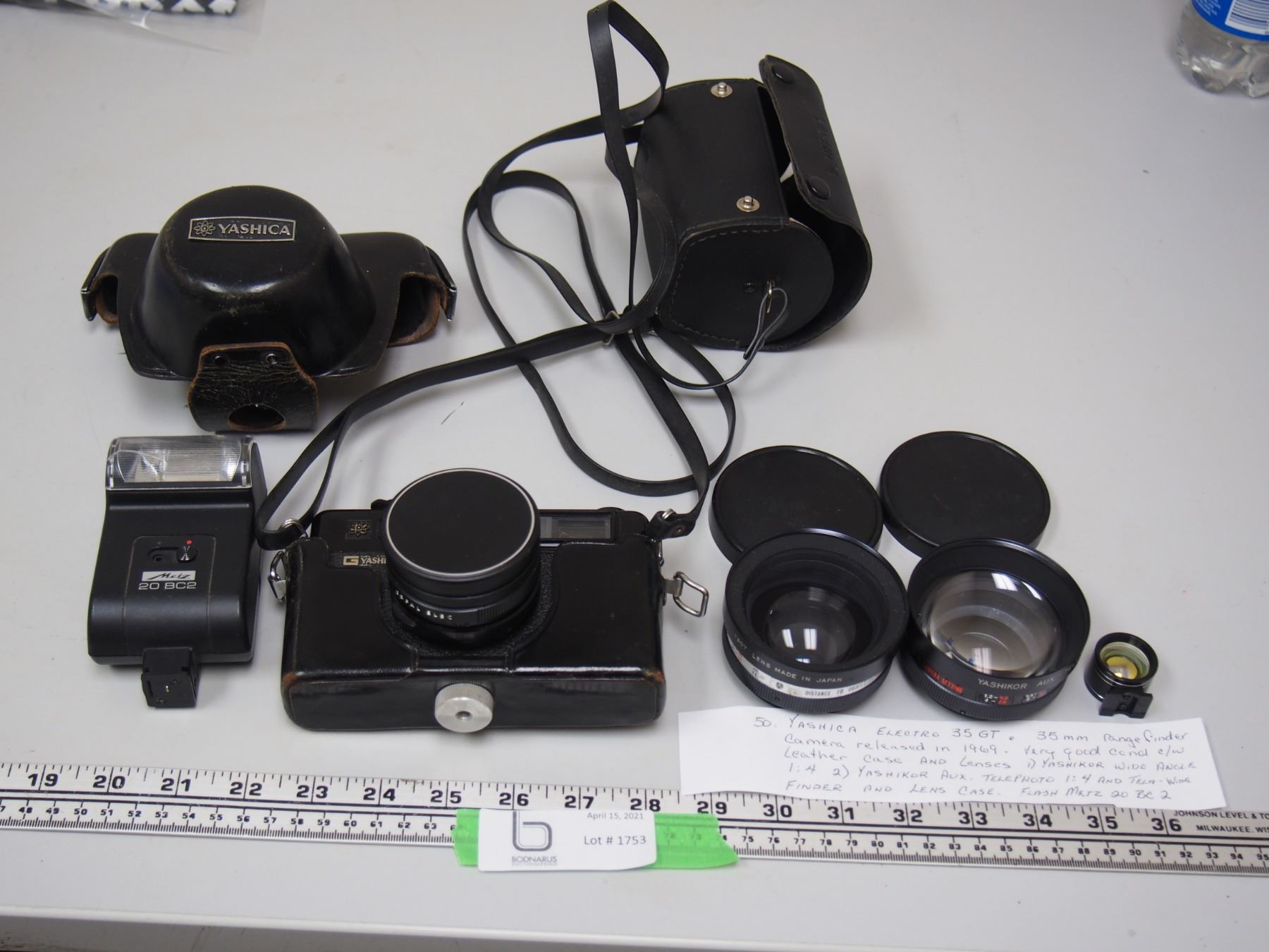 Vintage Yashica Electro 35GT 35mm Range Finder Camera Released in 1969 very good condition with Leather Case and Lenses